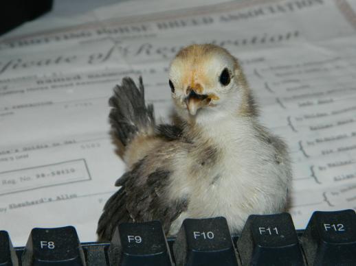 Thanks Bill, and I had it off a week or so, these chicks are getting close to a month old. Here is one that hatched New Years Eve, it's still in the house with it's buddies and spoiled rotten. This one loves to climb all over everything and get into everything. Such a sweet, innocent face, but don't let that fool you There is attitude in this one LOL