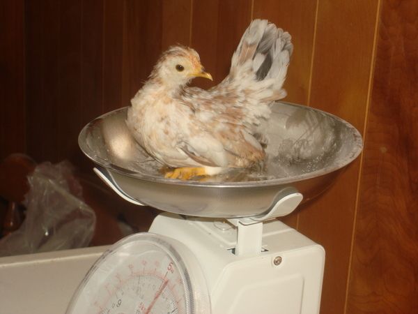 These round birds seem to grow larger than their playmates who possess a more typical body type. Lil Blue had 3 babies hatch around the same time as Snowflake and Snowflake has caught up with and surpassed the weight of Sweetness.