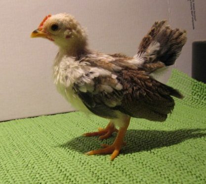 And last, but not least, this is my rescue baby - the one I had to help hatch (shrink wrap) Coloration looks like a pullet, but the comb is starting to develop and turn red so might be a roo. Breast is white. Tiniest baby. No official name yet, call him/her my "Baby."