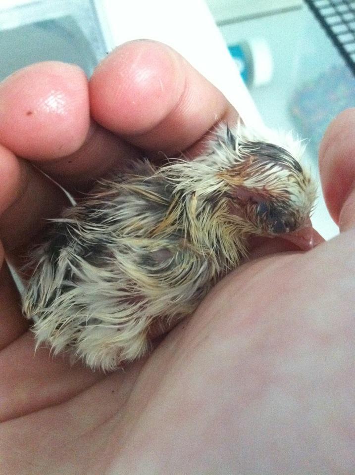 Well, I lost another chick last night, but the other 3 made it. I had to help them out as they were getting shrink wrapped despite my attempts at keeping them moist. So I have 3 chicks, which I am very thankful for. They all seem healthy. On one, I didn't notice it had part of it's egg attached to it's head. It is an unfortunate thing as she/he now has the name egg head. I can't resist!