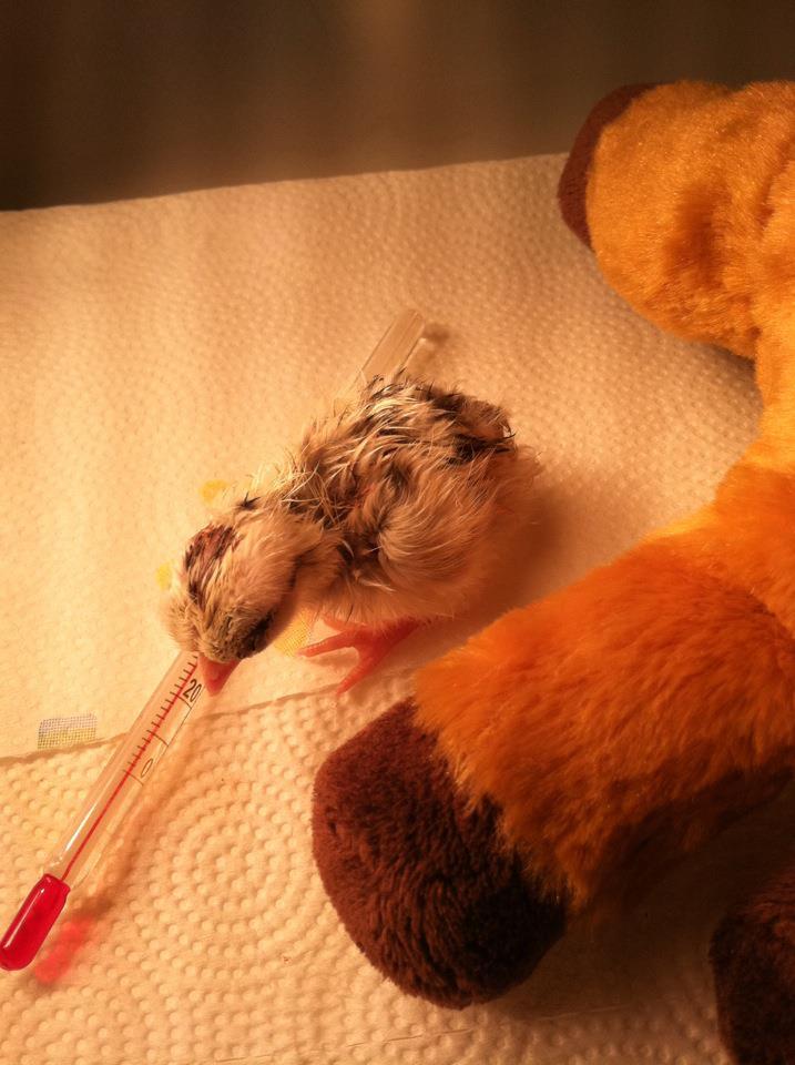 In the brooder. She is less than 24 hours old here. She is 2 days old today.