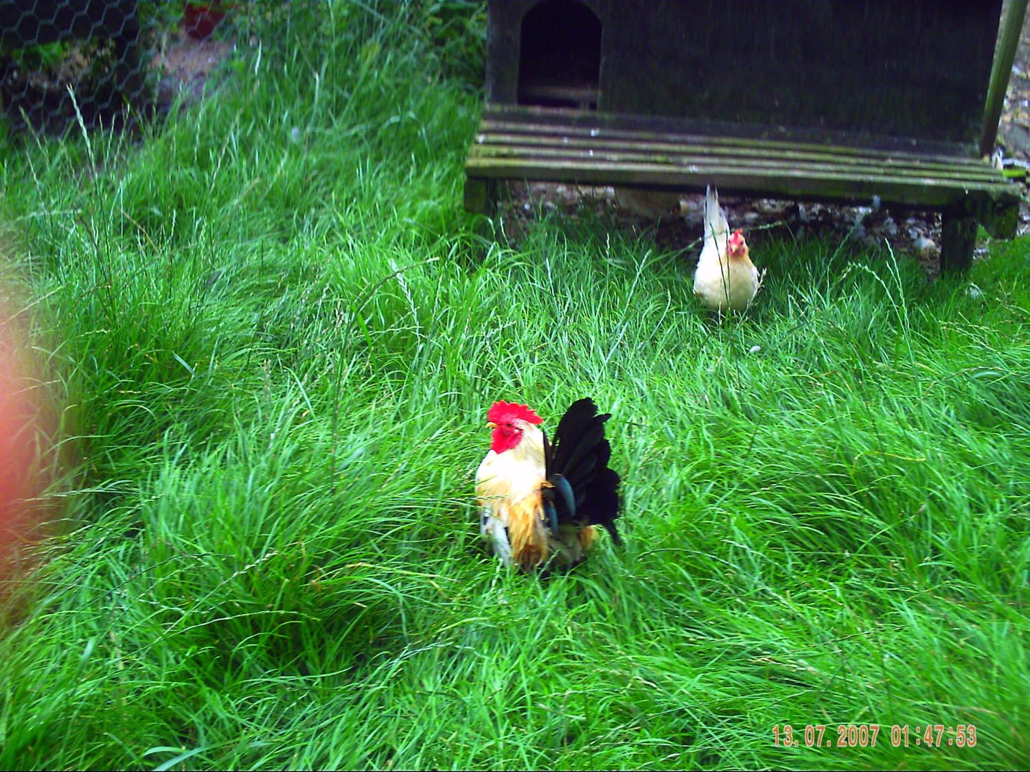 Oh wow, I guess you need lush grass to train your Seramas! LOL. Look how GREEN! Your boy is gorgeous and your hen looks pretty there too! They are Wheaten, right?