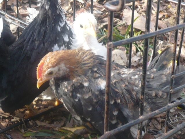 Here's who's using it right now; a wheaten, a black, some whites, and some mottled-type pullets that are too white already.