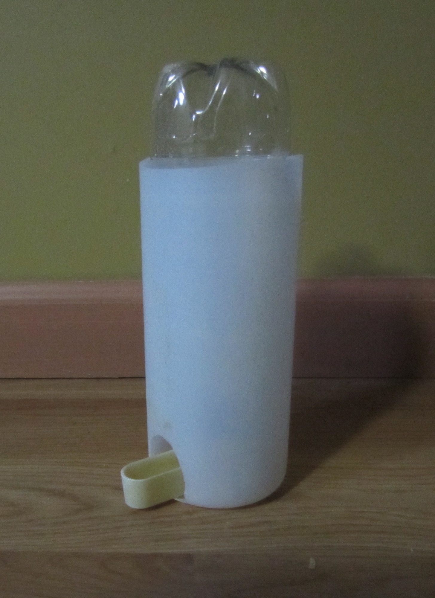 A few pages back, people were asking about providing water for chicks. Here's how I do it. Cut the top of a big shampoo bottle, and cut a small hole i the bottom on the side. Thread a soda bottle waterer into the hole, flip the unit upside down, and fir it with a full bottle of water. It sits on the floor without falling over, no marbles needed, everybody has easy acess, and it's easy to clean the shavings out of it with a couple of sloshy flips onto the floor.