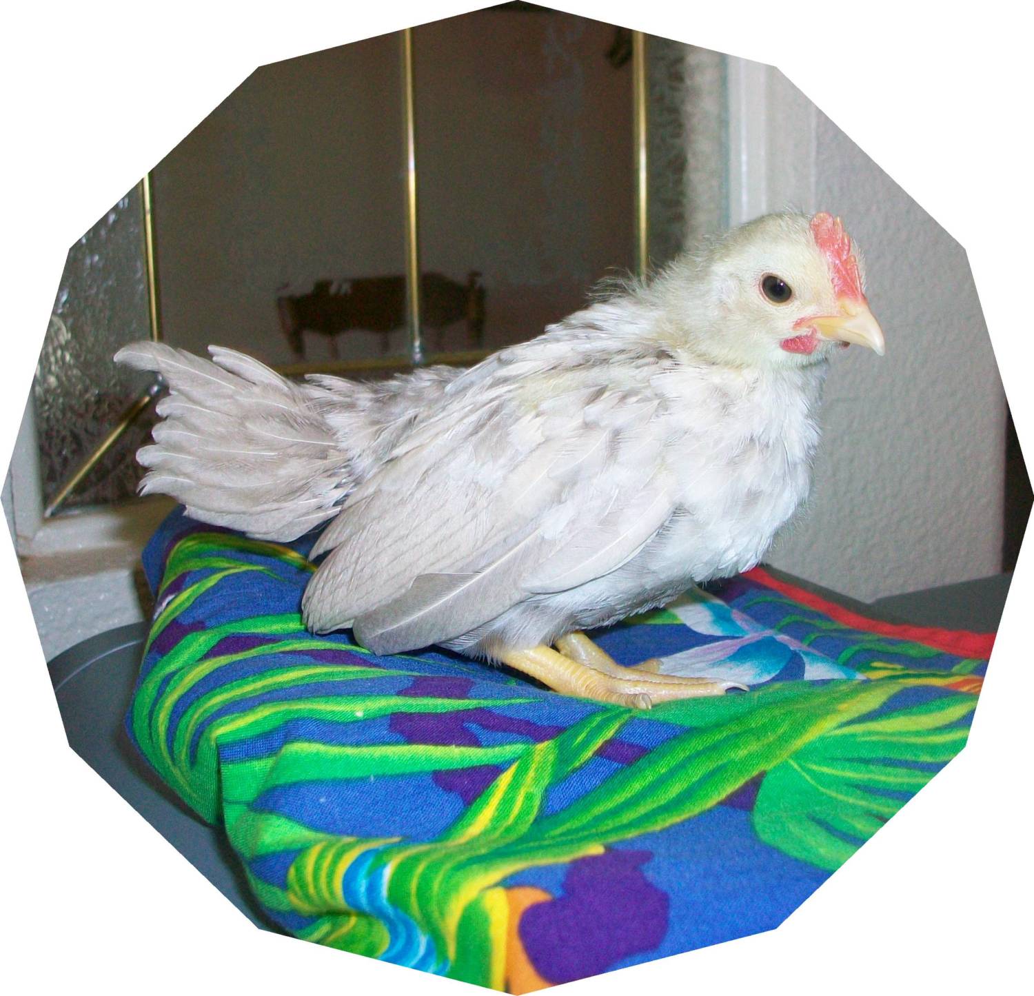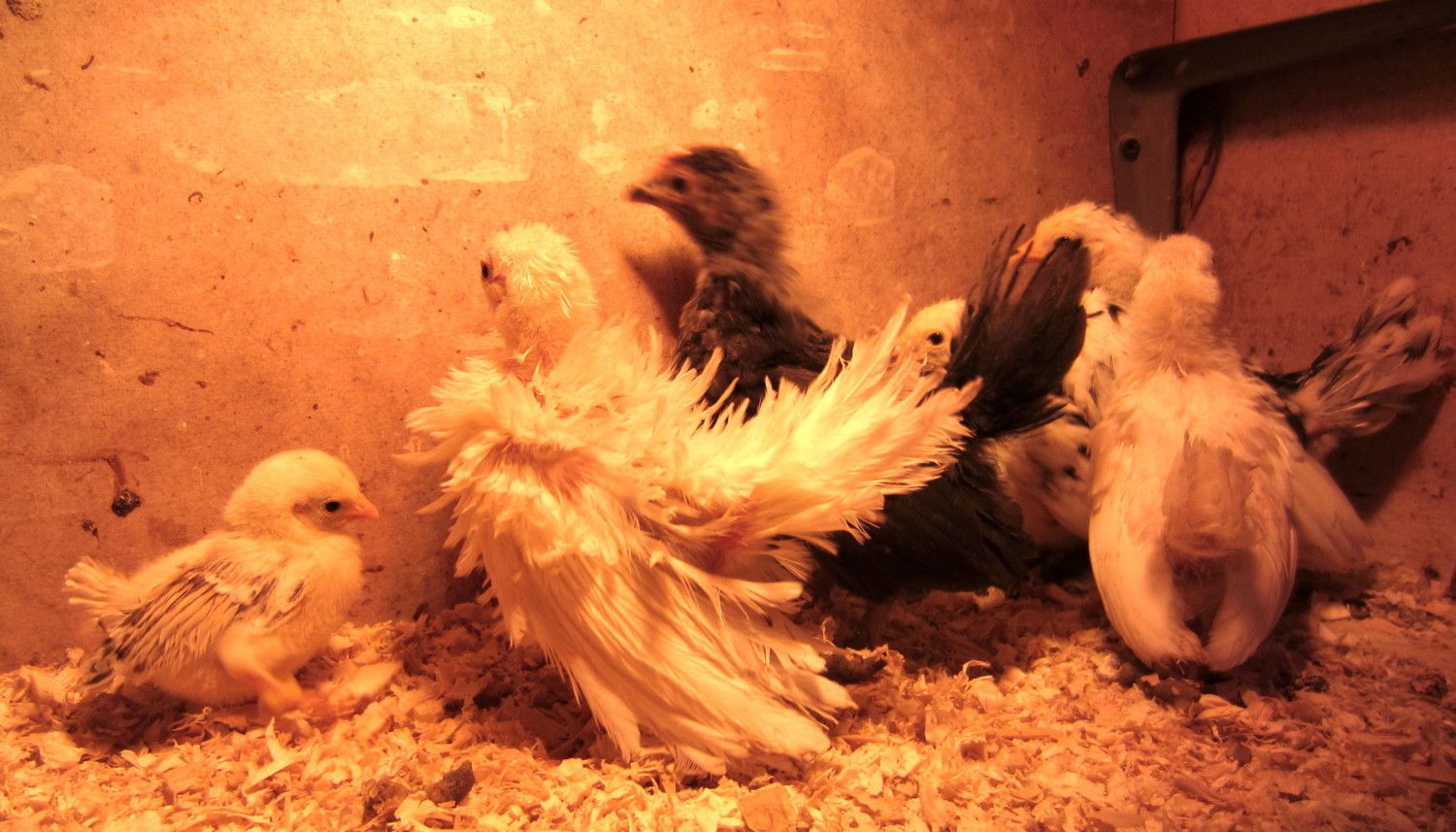 They spent the night in there. Now they're in a cardboard box "brooder" as they don't need more than that. I'll put them in a cage when they get bigger I'm hoping one will turn out to be a frizzle. They're both from Bhep
