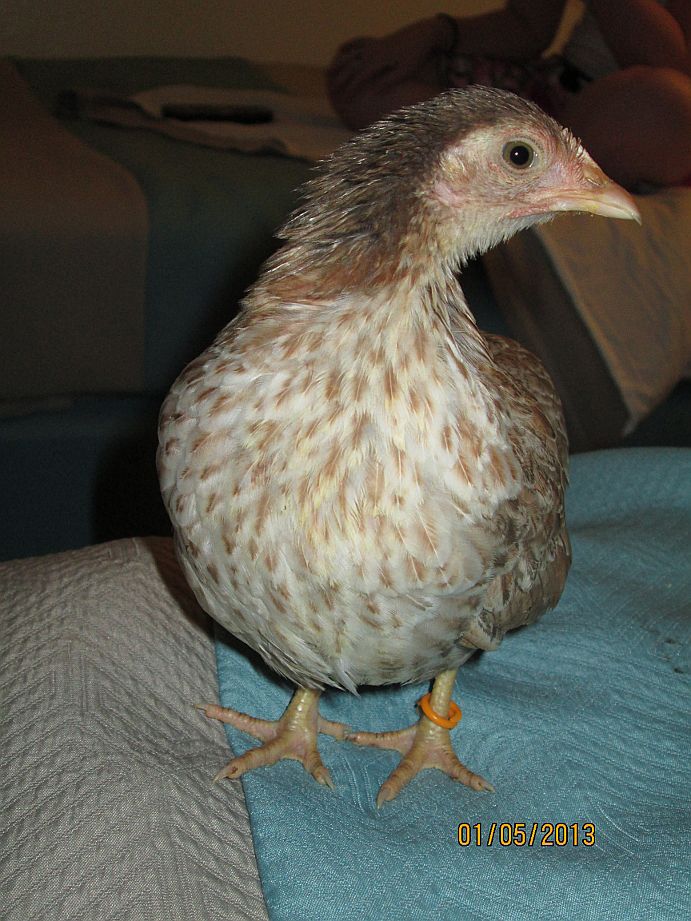 Uno and Scarlet are off to themselves. They hatched in November. They used to spar constantly, but have settled down into a nice pair. Uno has yet to crow, but he is very protective of her. I hope my new six-pack of chicks I got on New Yrs Eve will give me a nice harem for him.