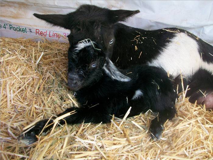 Those are the single cutest baby goats I think I have ever seen! I have been BEGGING DH to let me get a pair of goats! Goats rabbits and chickens all go SOOOO well together... but he says I need a bigger yard... he's probably right, but I want a pair of Nigerian dwarfs so insanely bad I can't tell you how drooly this pic makes me