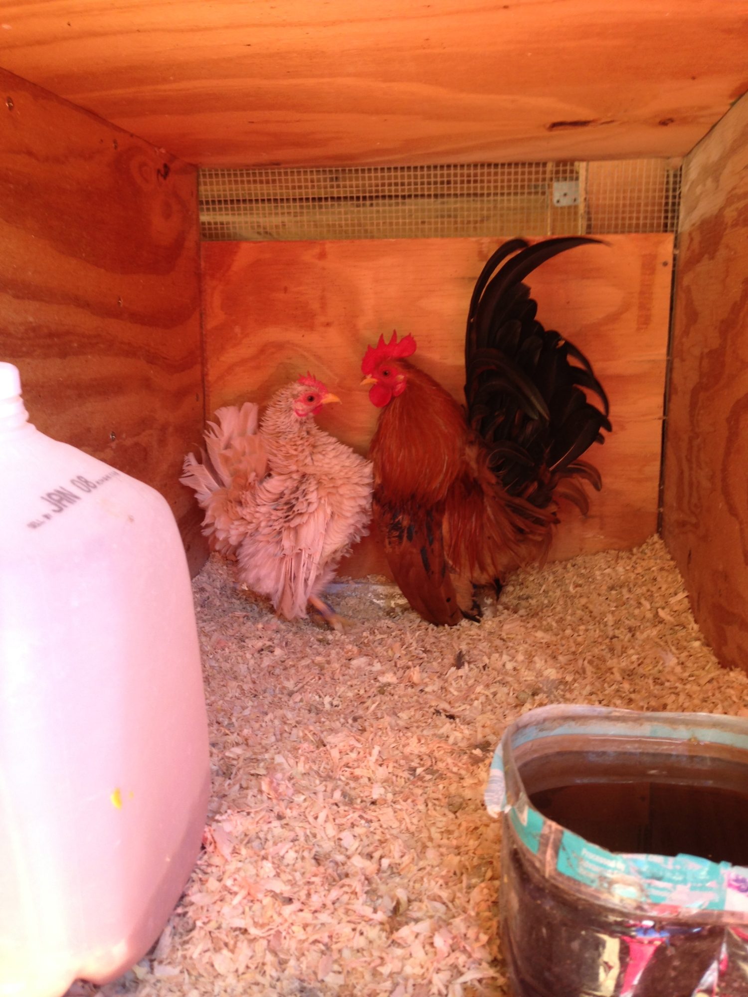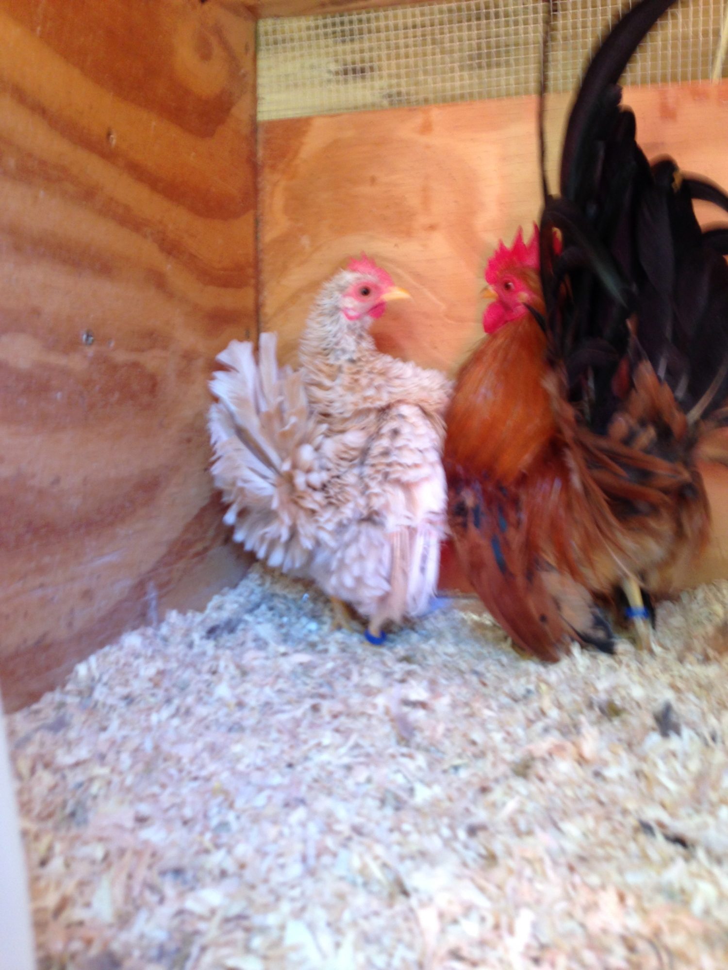I can see Rooder in the first roo...he is gonna be awesome....the two hens are cool...the darkest one is very tiny. They are six weeks old.