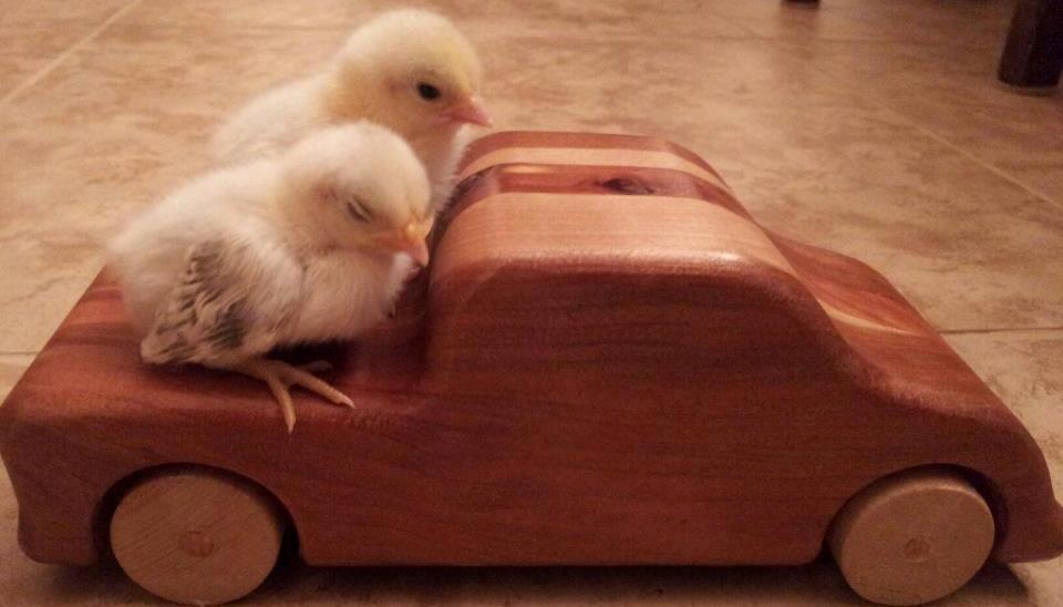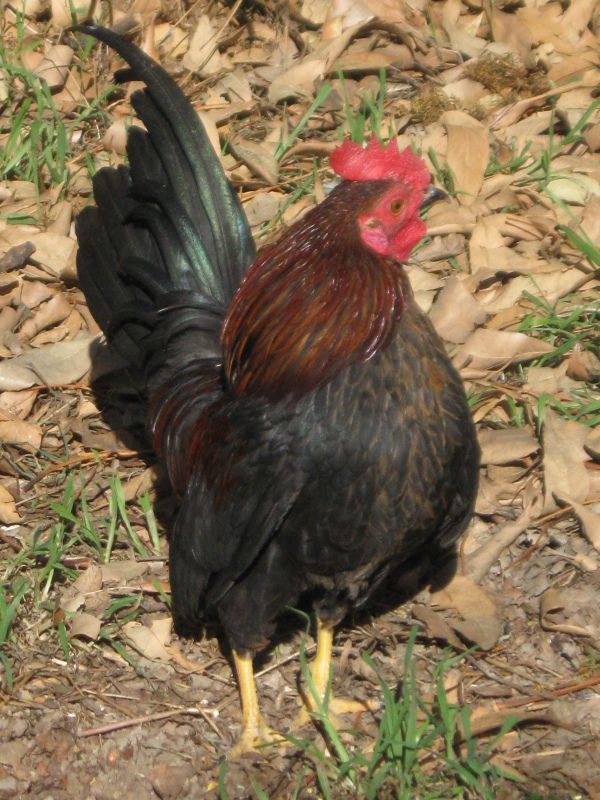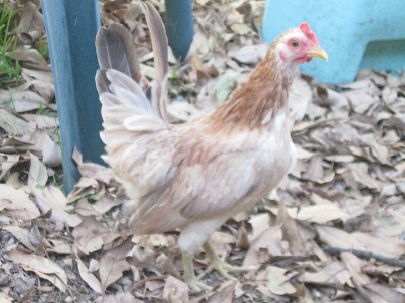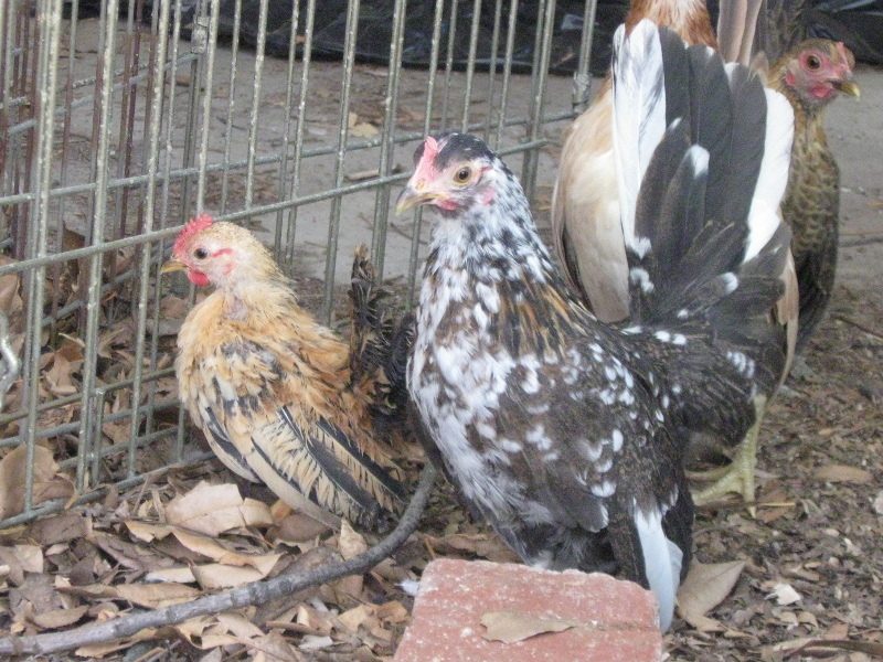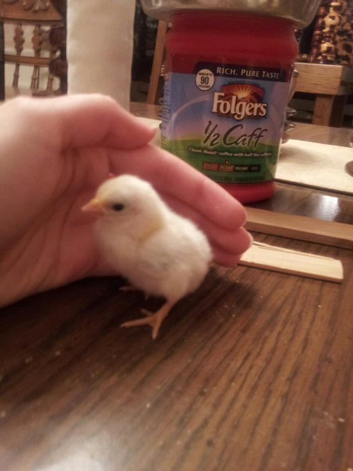 Here she was interested in terrorizing one of our new chicks. I guess she saw an opportunity to peck someone down, since she's the smallest of the bunch she grew up with, LOL. Had to protect poor Ron.....
