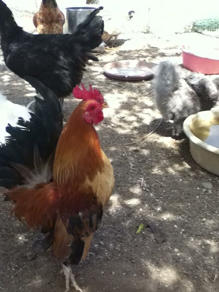 How old is she now? I bet she would have crowed and they would have butted chests a bit if she were a he!