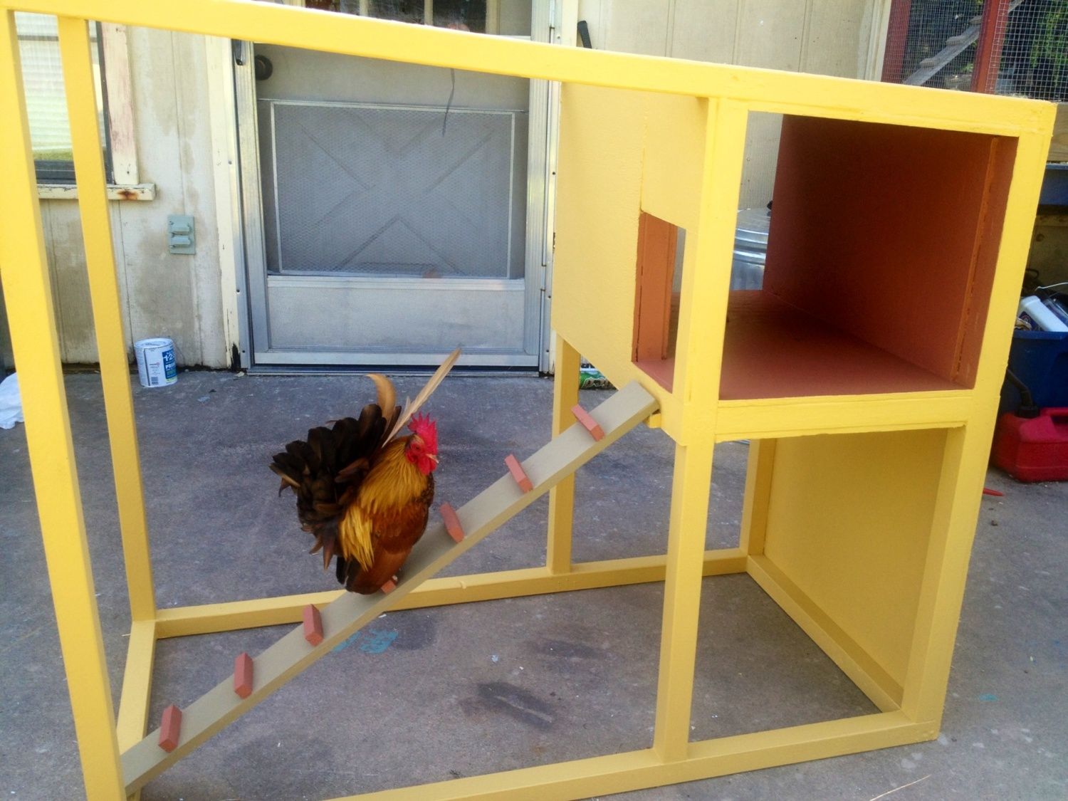 I finished the coop...Rooder likes his new home I believe.