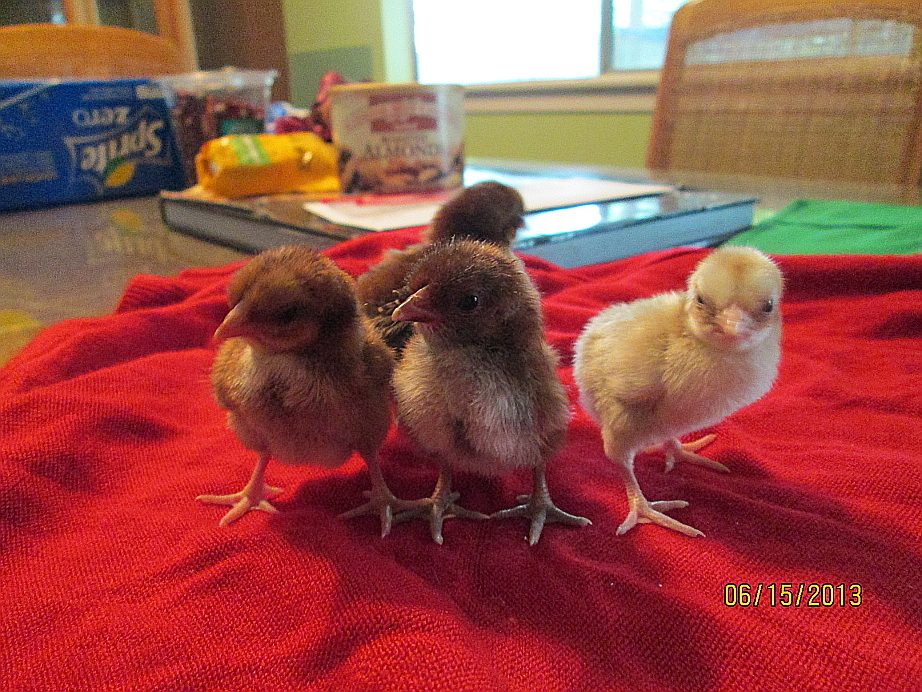 There there so cuteNew babes! 6 of these guys are out of the same trio of birds (a frizzled pullet and a smooth pullet, both the same chocolate looking wheaton like color, and a smooth cockerel who is mahogany, gold, and black with a laced or spangled chest). I have one which is a week and a half old and the rest of these little ones were hatched yesterday. The 7th baby is from a pen with a buff silkied boy who I suspect had chocolate gene... his tail was not quite black, and the pullet he was in with was a smooth black girl. The liver/chocolate/almost blue looking baby is theirs. I am in love with this hatch, and have more eggs in and due between the 24th and 27th.![]()