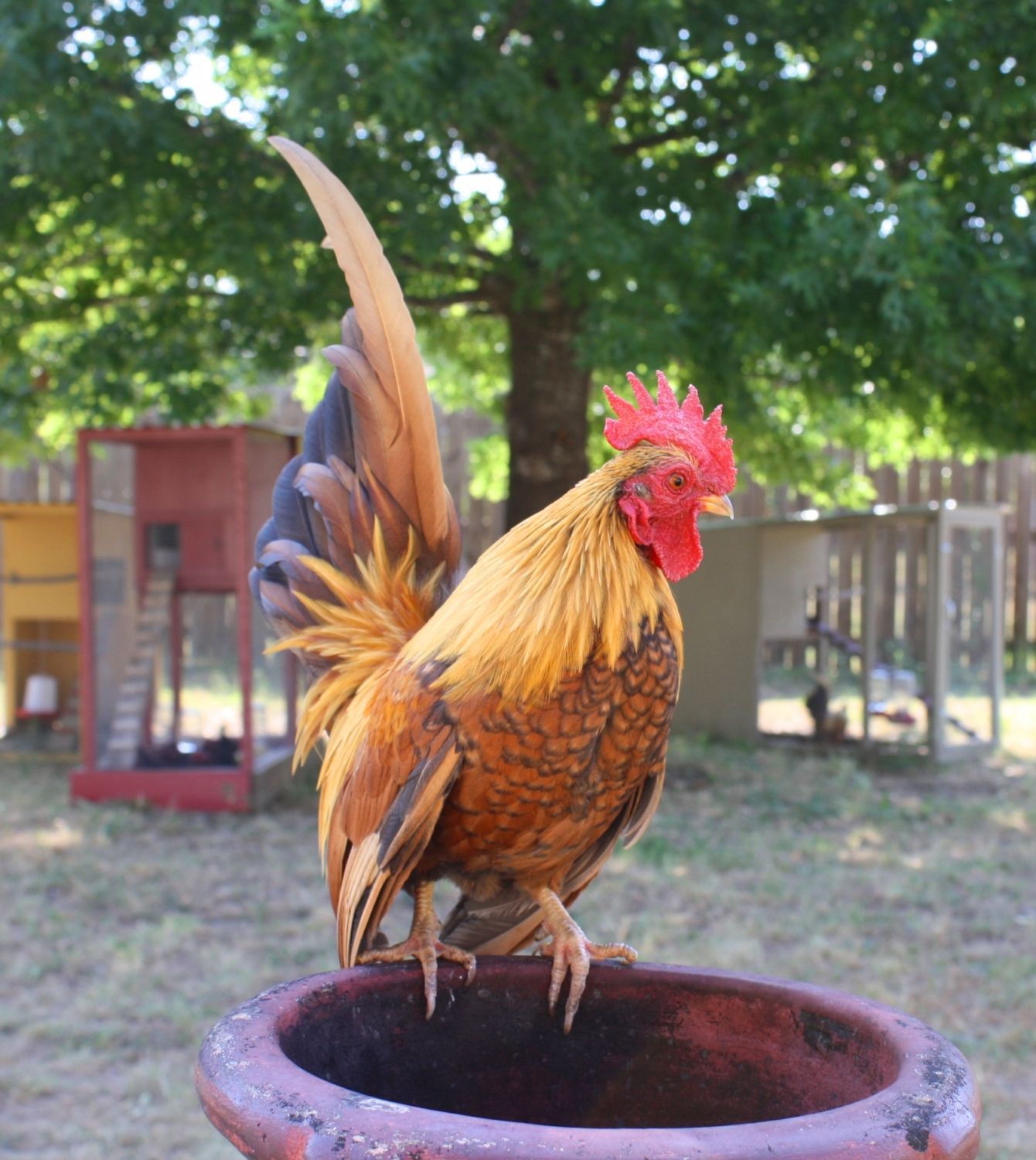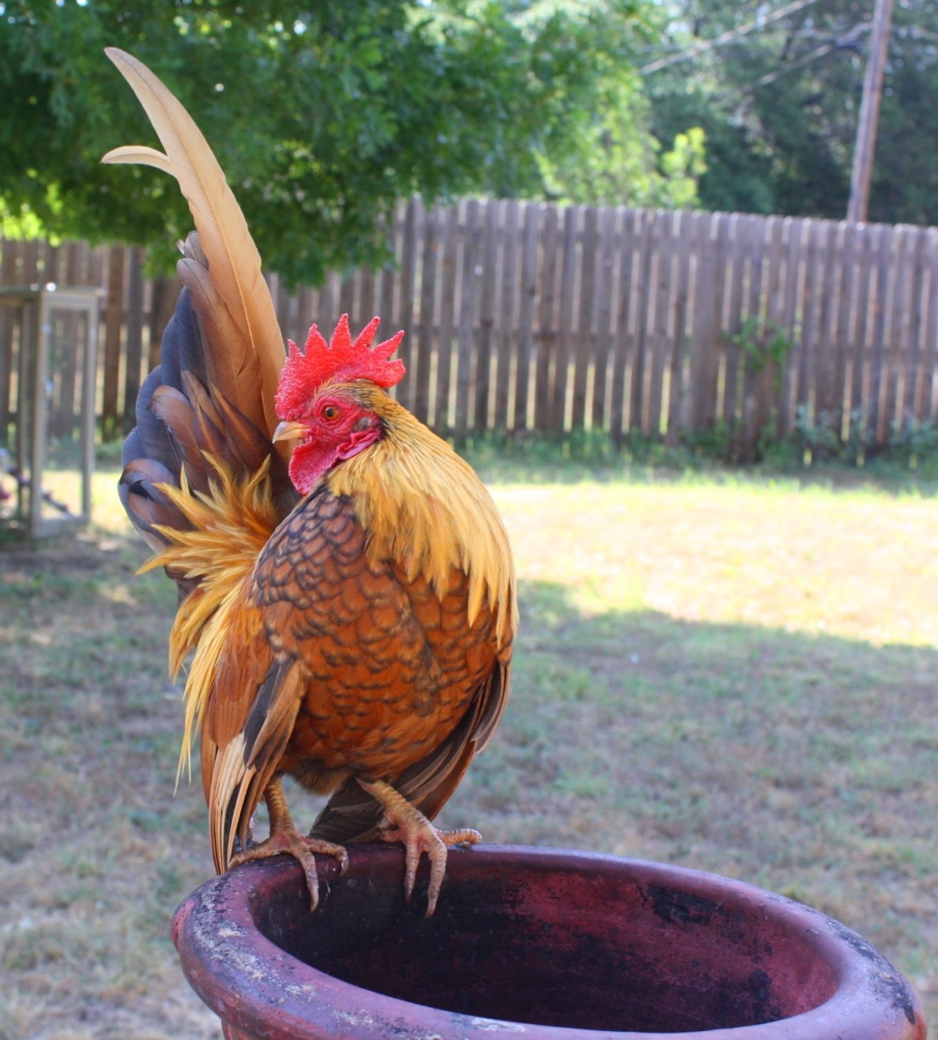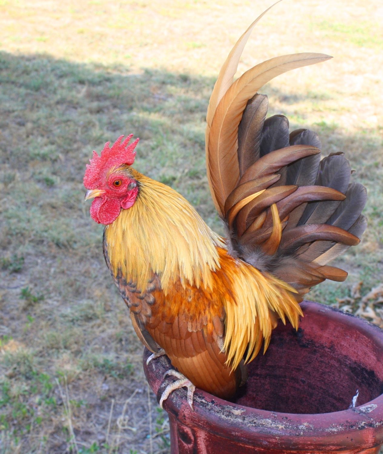 This is little red at about 6 months old.I have him with a red molted hen and plan to hatch a few of their eggs this month.