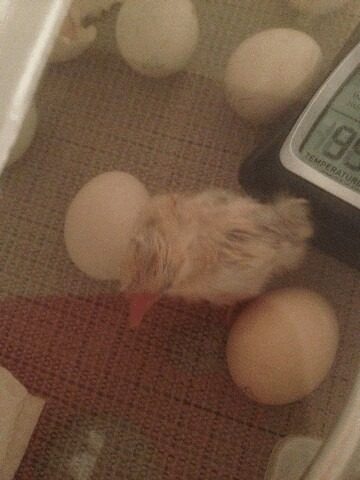 she purty though!Woke up to a video from the friend incubating eggs for me. One little baby has hatched and two more are popped!
