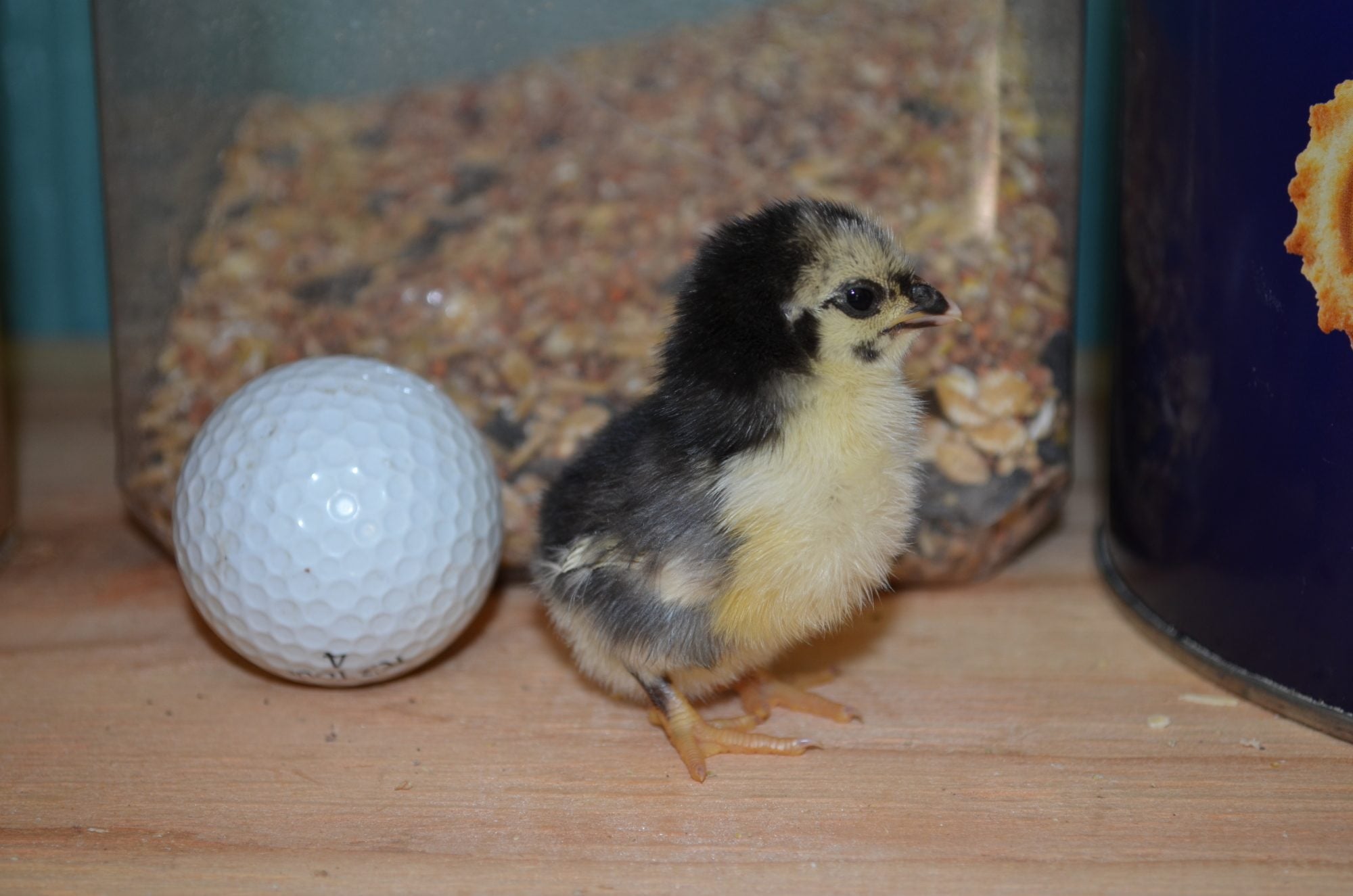 What a great hatch. You have some beautiful patterns. They are adorable! I had one similar to your mostly black chick in the second pic. Her name is Stumpy. She turned out to be a beautiful not-quite-black color. Maybe she would be called blue black(?) because the feathers are dark blue and shade to black at the edges. I will have to get a grown up pic and post again. Looks like she has more yellow on the breast than yours. Juvenile Stumpy is on the far right. All the white is gone now. Hope you can post more and show us how yours turn out.