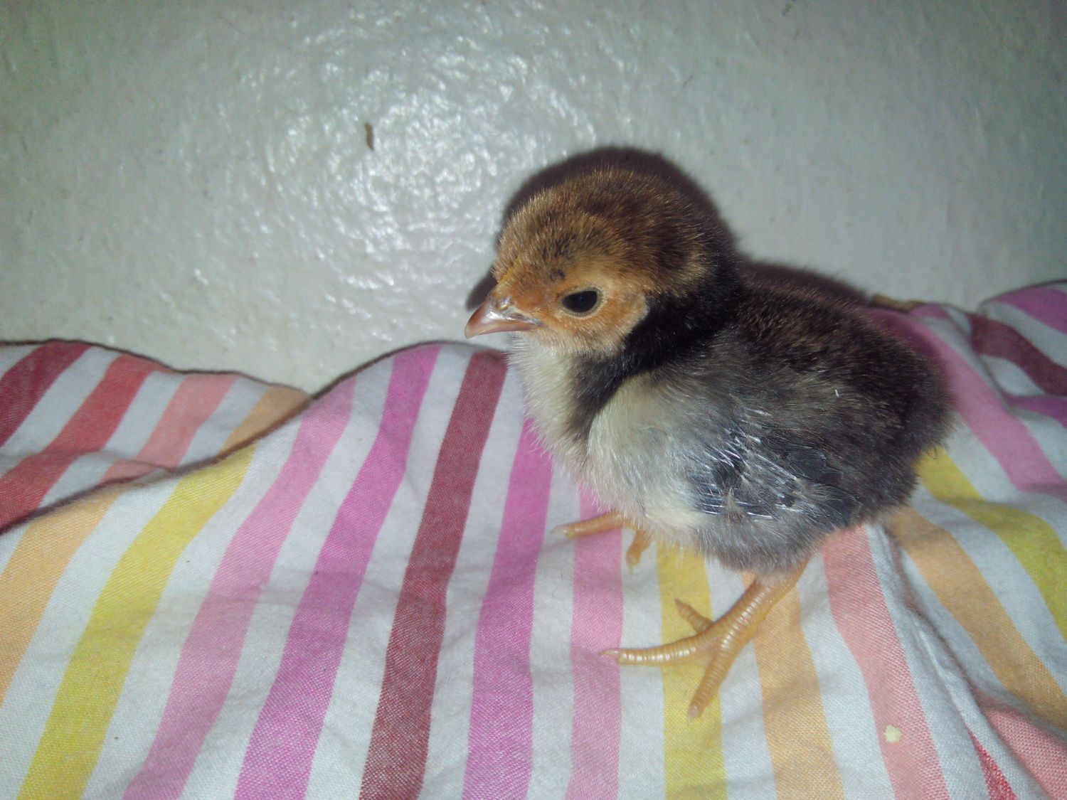 This is one of my babies. She was golden yellow at hatch then she got some really dark brown feathers and now at 6mos is really white