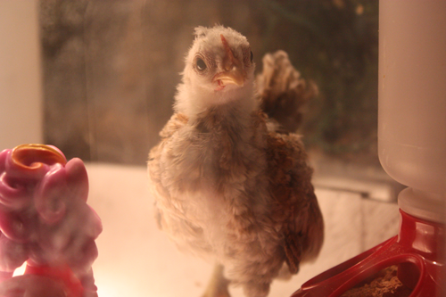 Exactly 1 month old today! I think it is safe to call this little one a roo, yeah? I didn't manage to hatch any other eggs, so I don't have anyone to compare him to, but even his face skin is red beneath the fluff.