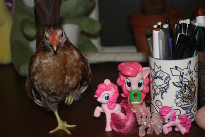 Aw, how cute. Luckily the two chicks I hatched out were pullets. One of them has started squatting!