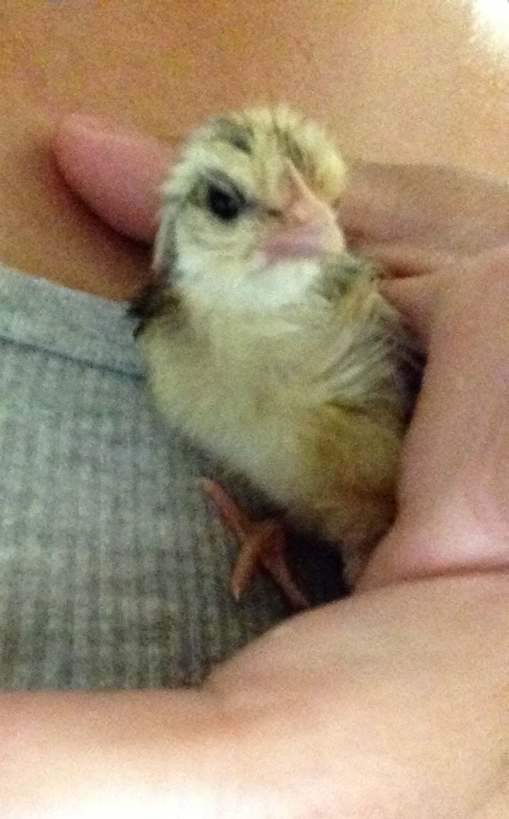 Yeah! He cracks me up, he's so tiny. I mean, I knew that the chicks were tiny but the scale puts him at 12 grams & some change! He's knocked out asleep until he hears me then he looks like popcorn hopping all over the place til I pick him up. Just want to eat him up!