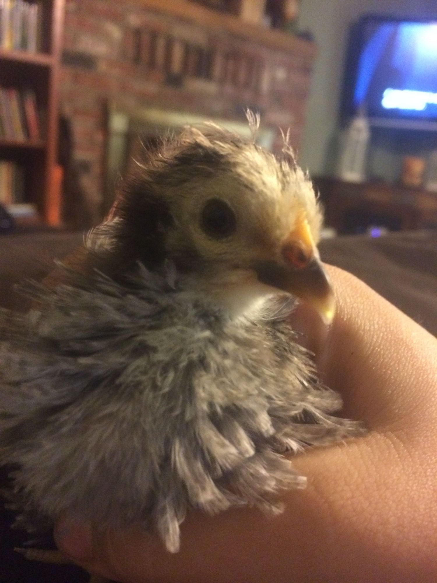 Oh Noes!! I would have taken him! I'm sorry, though hun.This is a little pullet about the same age as yours. The comb on her brother was very much bigger and redder. I would post his picture but he was culled as soon as I was sure of his gender. I'm quite pleased with this little one. The mother is about 10 ounces; little one is 2 ounces and I like the looks of her more than the mom.