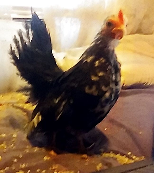 I have NO idea how to care for them, to the extent that it is different from larger chickens. I know that they cannot free-range, especially since she is white. Also, it seems to me that they ought to be inside, but I don't know if that is correct. At present, they are living in my bedroom, in a birdcage. It seems a bit undignified, but they don't mind. As I type this, they are madly trying to eat the flashing lights on my keyboard.... They really are little imps! Any serama-specific advice for me? Thank you!!!
