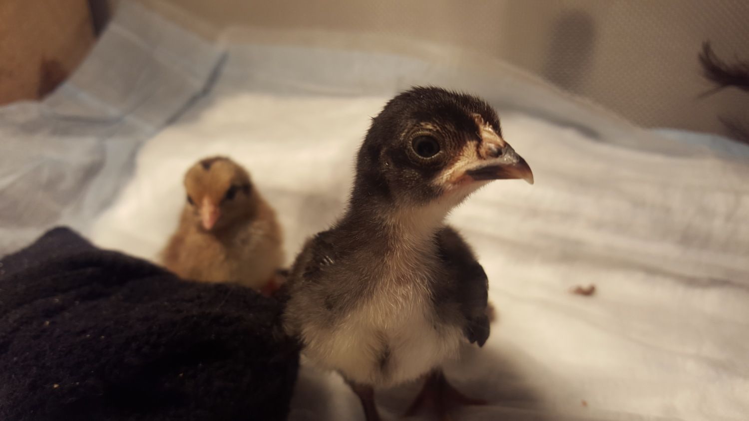Thank you! You should start seeing the chest feathers coming in soon. Did you hatch her from shipped eggs or do you have a pic of the parents?So far my little ones black fur is coming in with black feathers.. Nothing yet has come in on her white.. Yours is Very pretty!