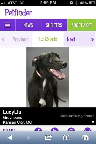 Grey hound. She's come in side.