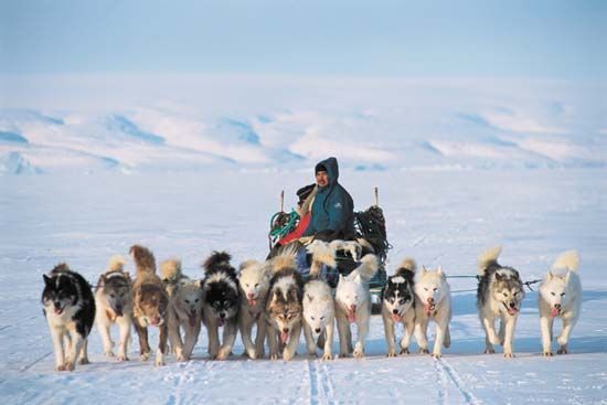 Apparently the team of 13 is Qimmiq from Northern Canada and the team of 11 is from Greenland. I can't tell the difference