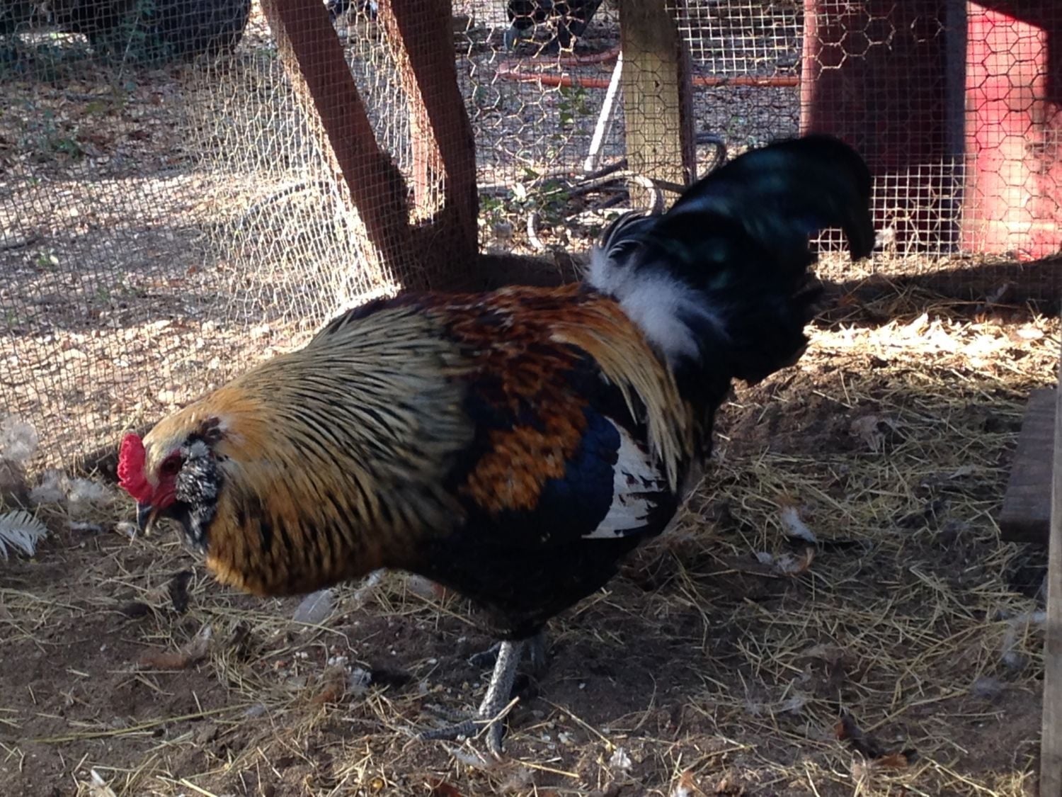 There is no way that the OP's bird is a pullet, no matter how much hoping and praying you do.my chickens are pretty old now but the fether trick still might work for you! so the feamles wing fethers go like this -_- thats how i can tell and the boys i think is ethier --_ or --- i frgot but the boys is like that and so thats how i can tell oki hope its a girl!![]()