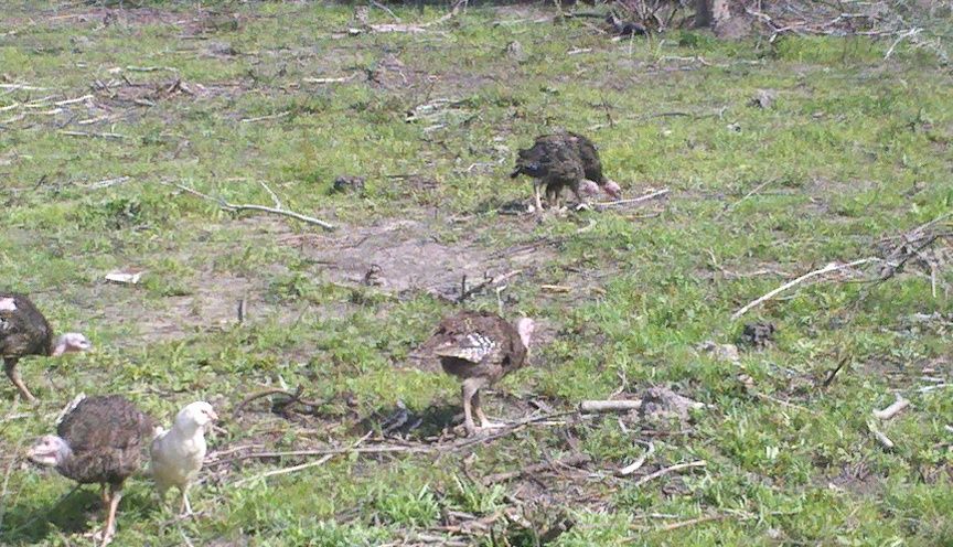 Today it is a beautiful 73 degrees, with a slight wind ruffling through the trees and just enough cloud coverage to make it perfect. I decide that TODAY is the day to start trying to free range the Turkeys along with the rooster packing peanuts.