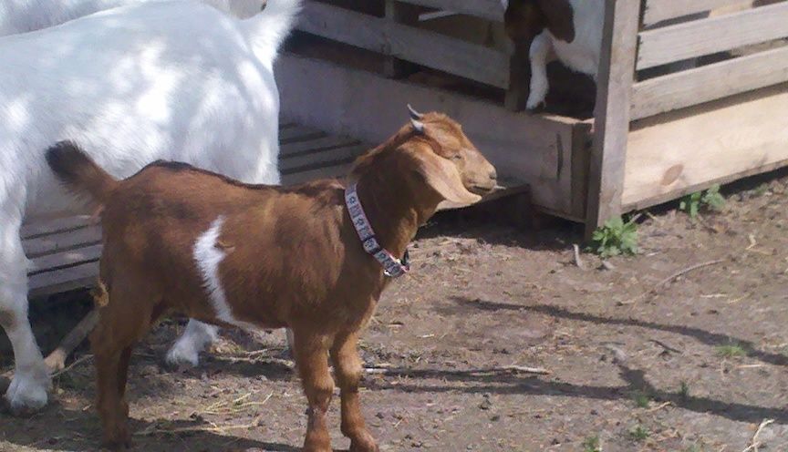 Sitting there just watching the birds while they got comfortable with their new surroundings, Eve, our soon to be milk goat, comes over and jumps on the stand with me. She nuzzles my hand and I begin to pet her. Eve believes that if you are sitting there, you are there to be her jungle-gym. In my lap, down on the ground, back up again. “Pet Me NOW!!” A little nibble on the shirt sleeve, “Hey, whats that on your hand?”