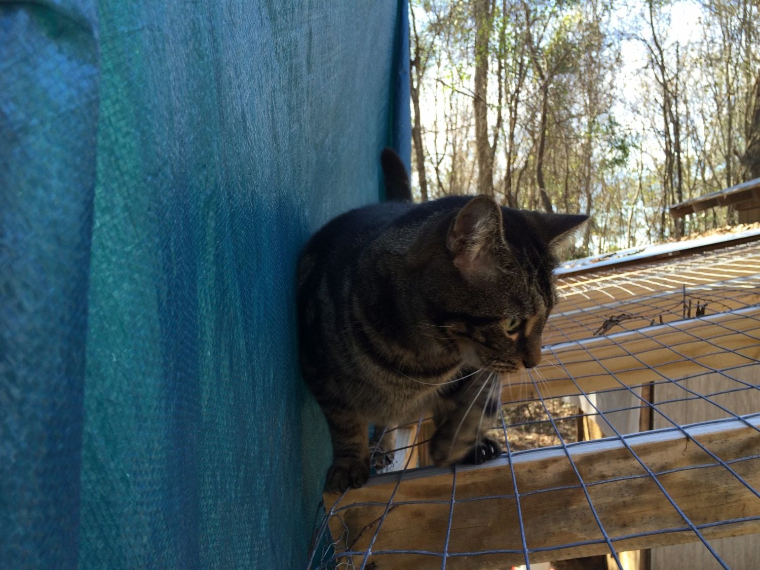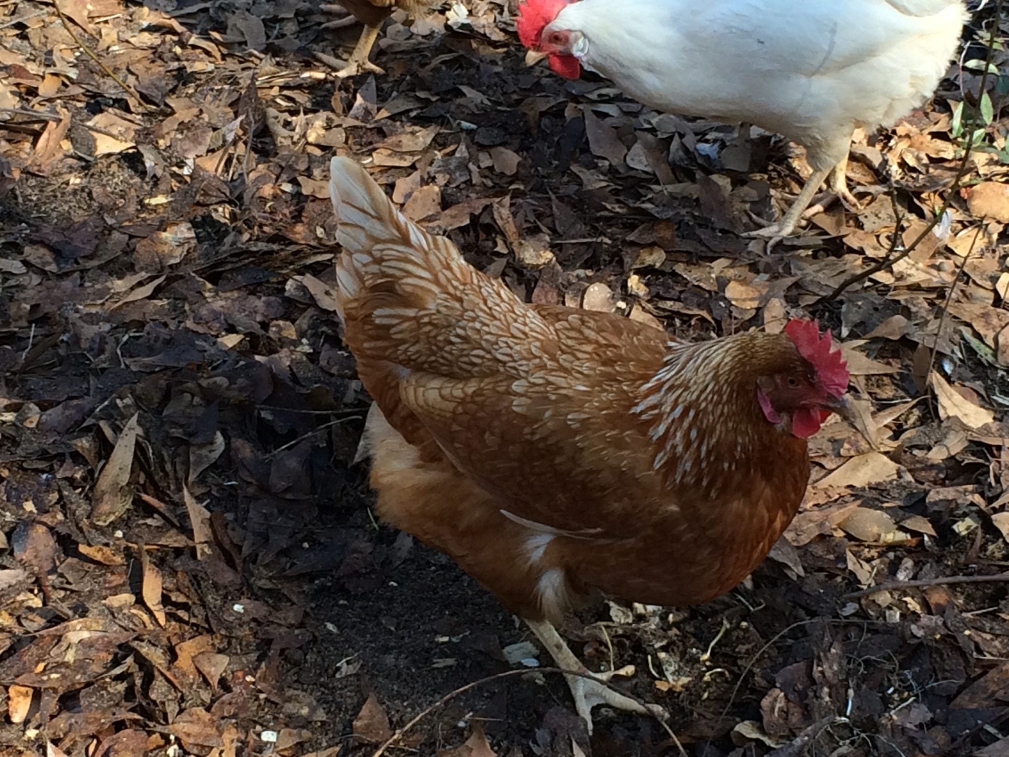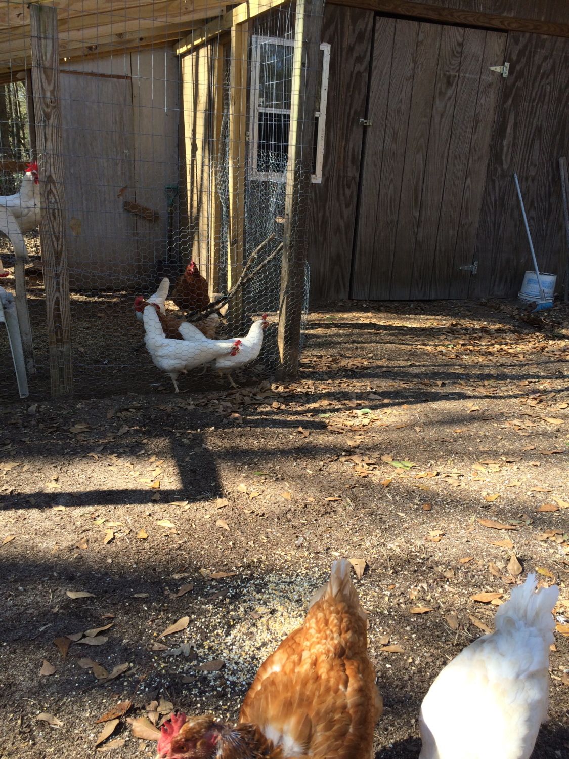 After about a half an hour I put the invalids back in their tent and then let the rest of the flock out while I gave their coop a good cleaning! The girls didn't wander too far and when I was done cleaning I enjoyed sitting out in the sun watching them fight over worms and thoroughly destroying the raked up piles of leaves! Even more humorous was watching my oldest cat Deigo play the part of hawk detector and chicken shepard! Anytime the girls did start wandering off, I'd hear him start meowing and sure enough he had the girls between us and he was "sheparding" them towards me! Here are some random pictures taken with my phone this afternoon!