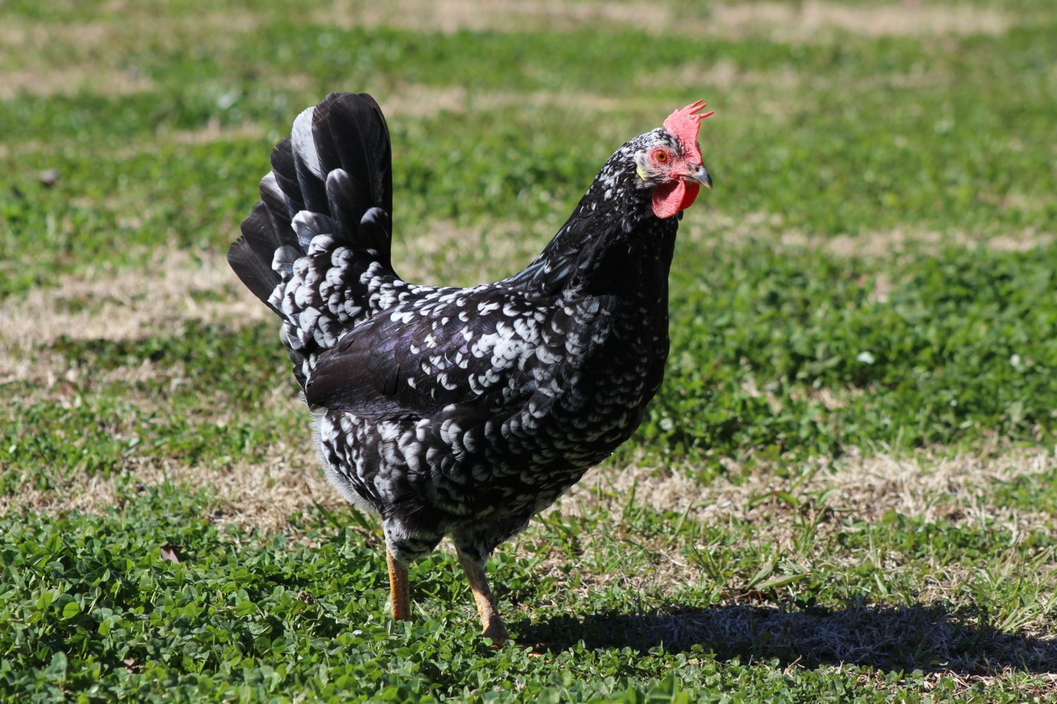 Hahaha Yellow House Farm - I am certainly tempted when I look at the pics of your beautiful rosecomb ACs. My AC has the floppy single comb. While we don't get really bad winters to harm the comb, I just don't like the look of it on her. Plus the rooster likes to grab hard on it and she often gets tears on her comb. She's otherwise such a beautiful bird - I love the black with white mottled look. My AC is rather small to be dual purpose bird. Are the rosecomb birds larger in stature or do you use your Dorkings for meat and ACs for egg production? I love the look of your Dorkings - they are gorgeous.