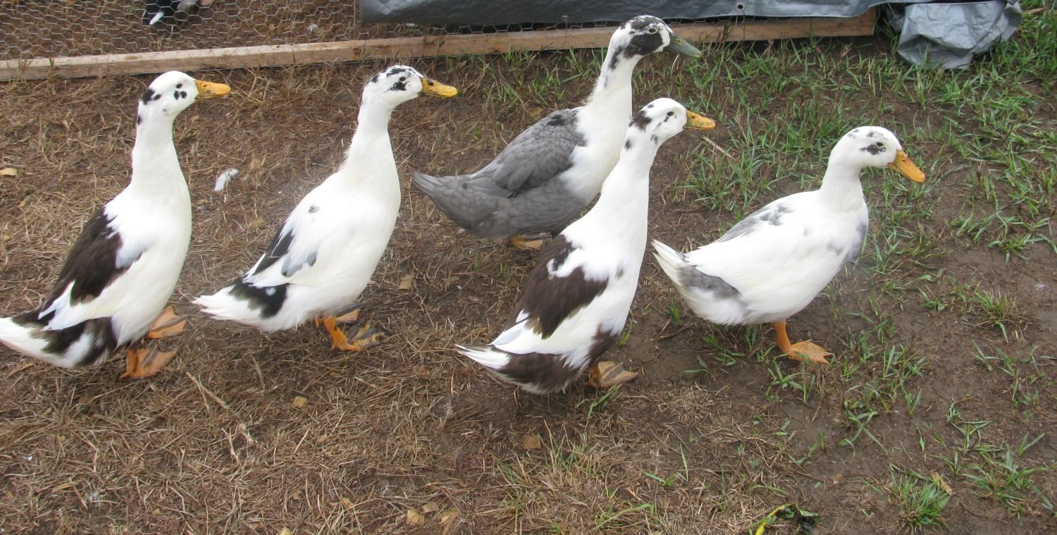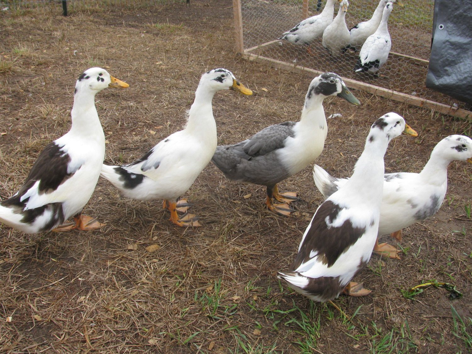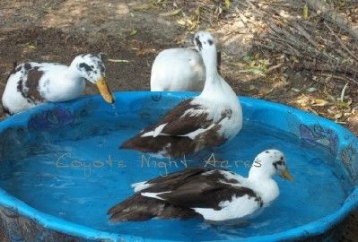 The above ducks are ones I hatched from eggs I bought from Toadbriar. They are seven weeks old in these photos. I have two chocolates, a black, and two tri-colors. I have a hard time telling the difference between blue, lavender, and lilac, but I'm calling the tricolors blue with black flecks. Anyone else care to weigh in? The colors in the photos are true to life.