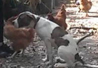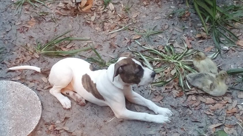 But, even a very friendly dog can kill them just by accident and their sheer size alone. Lots of people introduce a new pup/dog to a chicken by holding the chick out to the dog so it can smell it. The dog think's he's being offered a treat and chick is dead. Many different scenarios but most end badly for the chick or duckling or whatever.