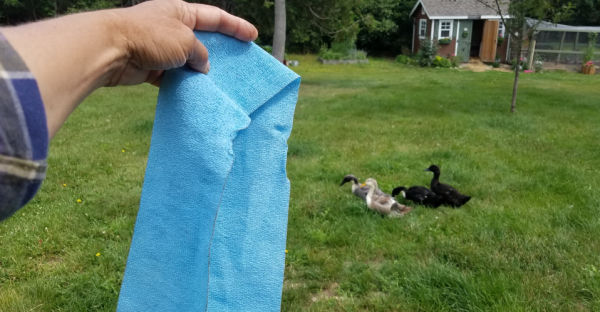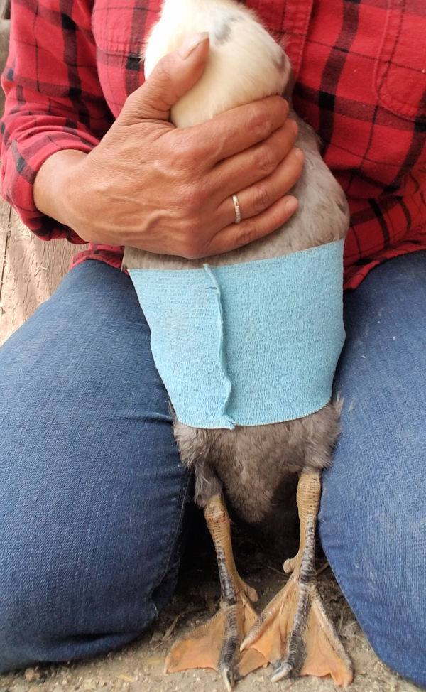 My plan was to wrap the ducks each morning and then take the binding off when I locked up the coop each night to allow them to exercise a bit and sleep more comfortably. At least in theory.