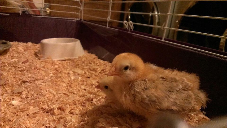 hello all, was a lurker for awhile and finally decided to join!, i recently picked up two basque chicks and one seems to be real jumpy in the brooder when someone is standing near it (wants to attack), they are just over 2 weeks old, its the chick in the front i asked for two pullets but wonder if it will be a cockerel? its darker than the other chick and not as feathered