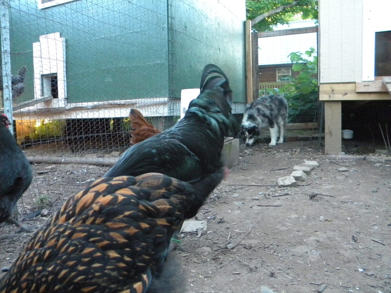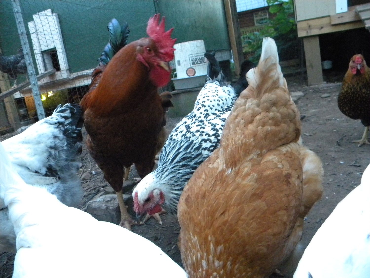 Every night before they get ready for bed I give them some scratch. They love it. My Aussie looks like he's looking for scratch too. My roo Rhodee telling the girls to come and eat.