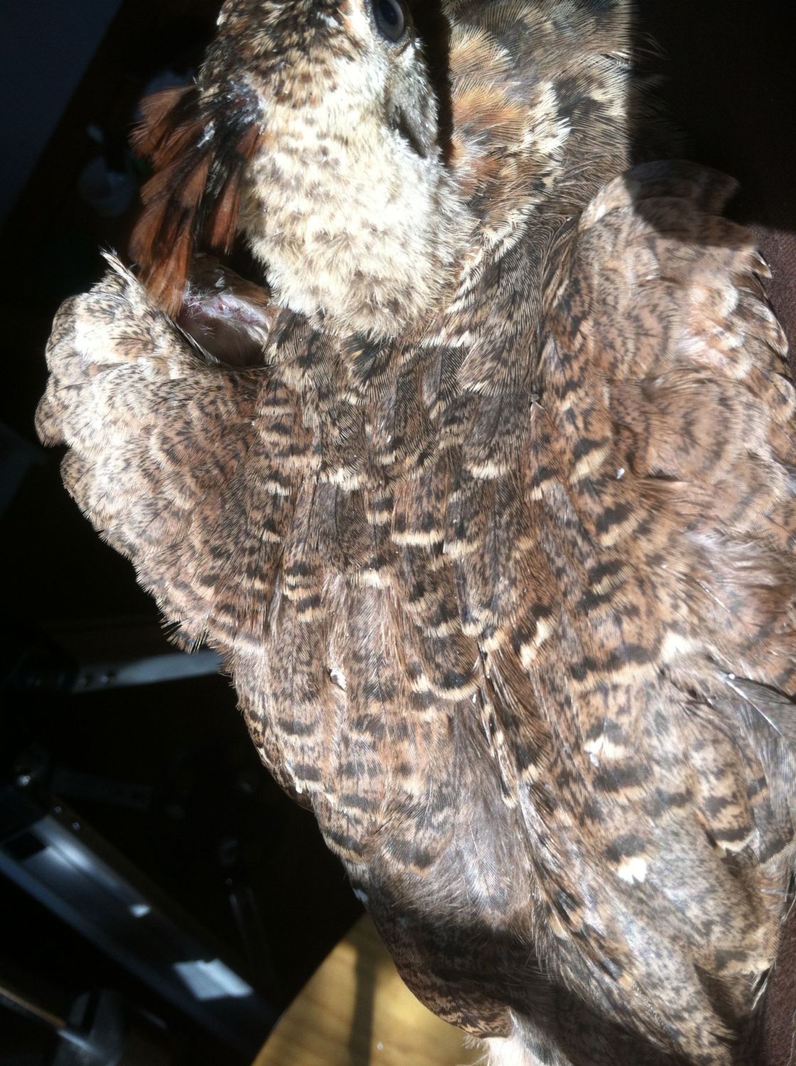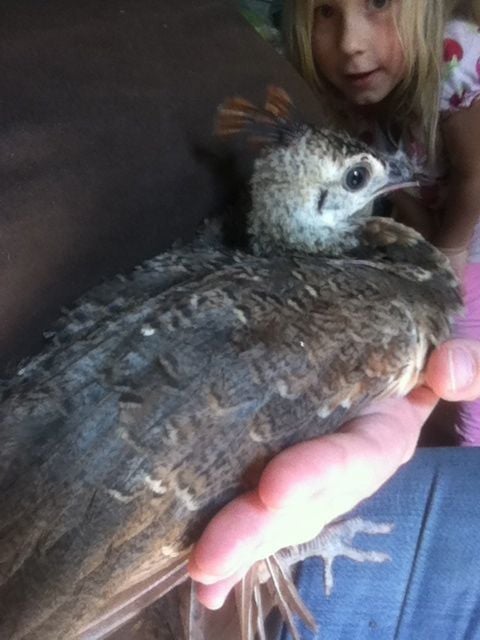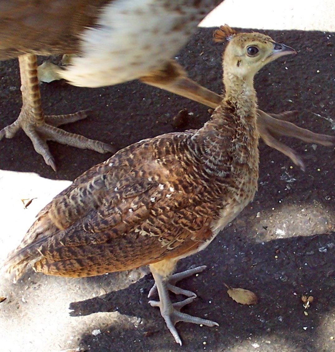 Sometimes Peahens will start out with barring and fade later down their life. Some peacocks start out with barely any barring and gain more barring later down their life. The flight feathers still remain the same through their entire life. Sometimes the peacock will look like a peahen but the flight feathers are still like an adult. Each peafowl is different. herwitsend your peachick is a peahen.
