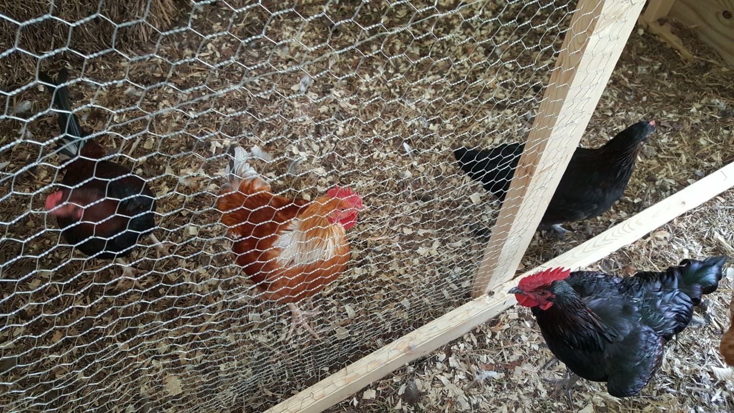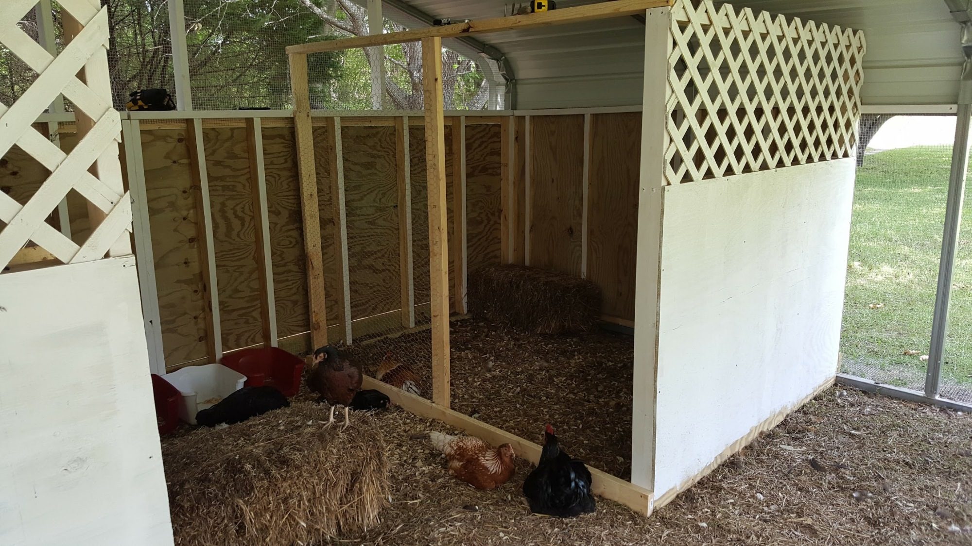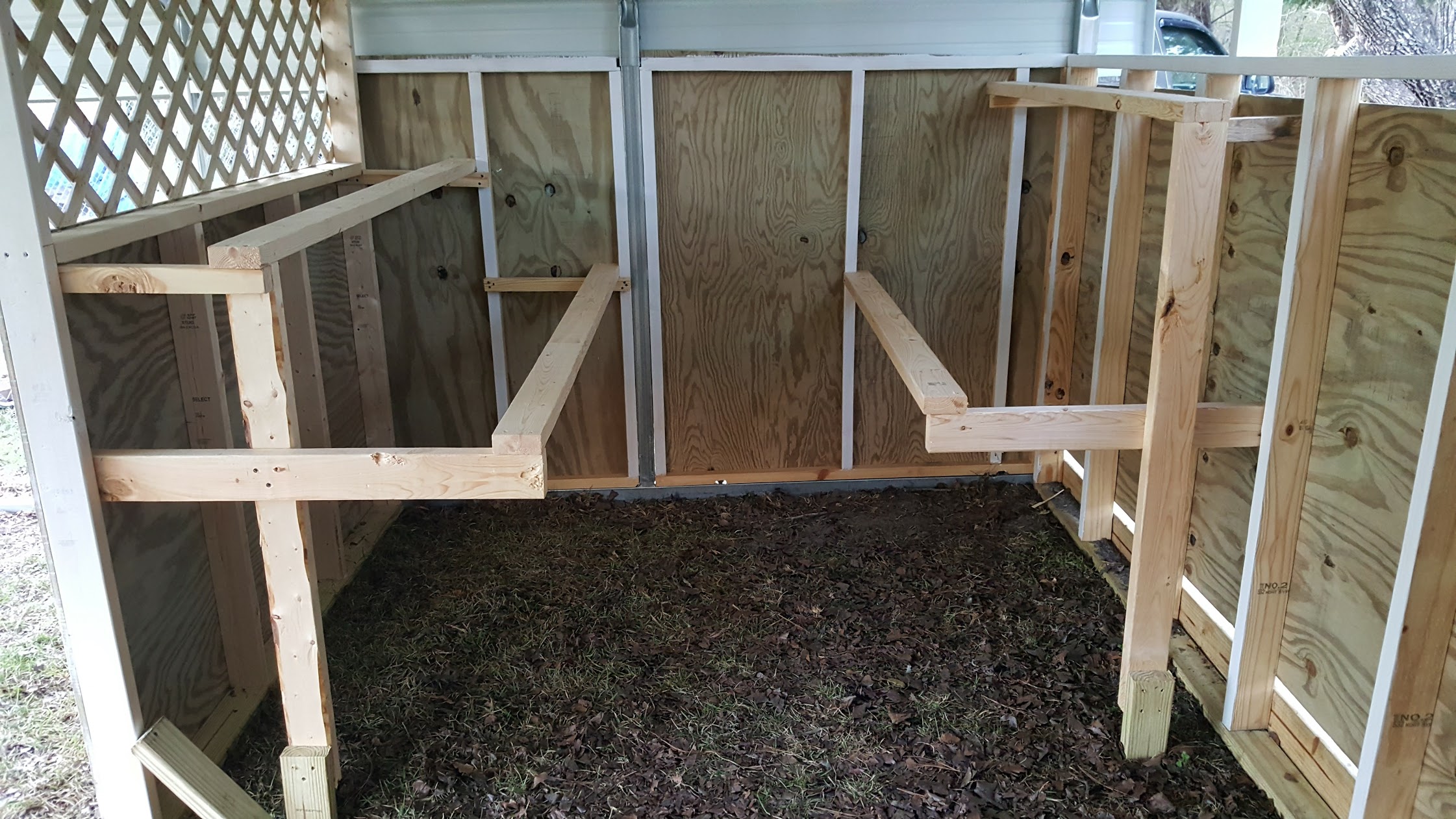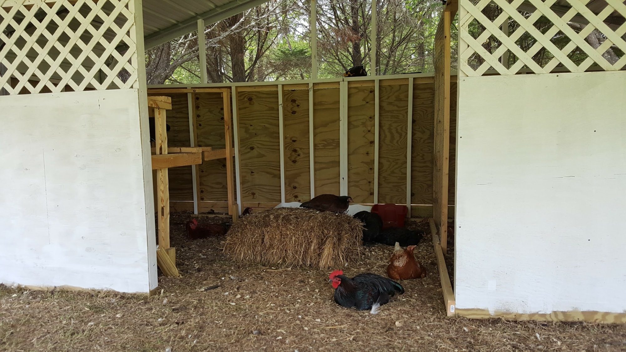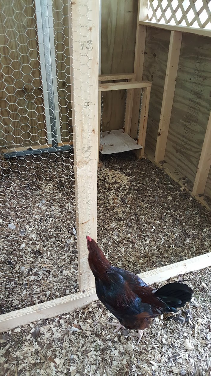 We chose to do this with the roosts instead. Happy about it. Need to figure out something for that open wall in the back to add a little bit of rain protection, but we've got some time, I think.