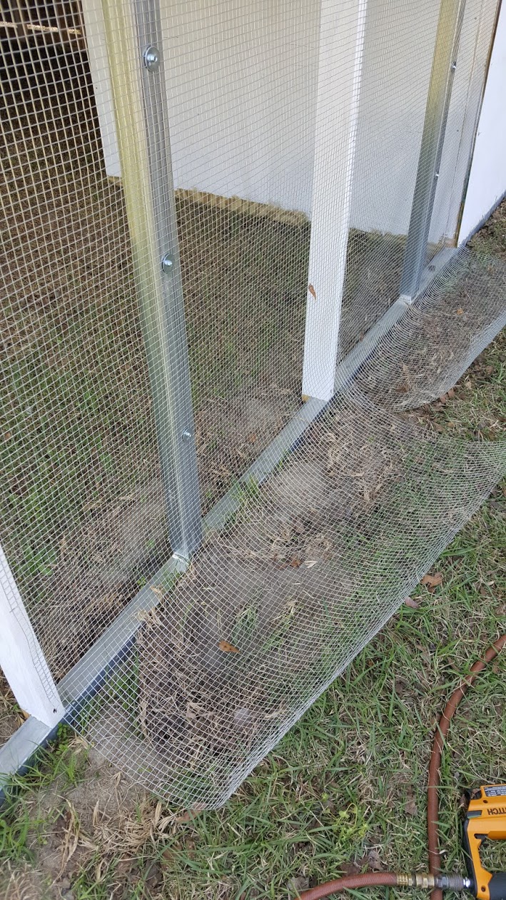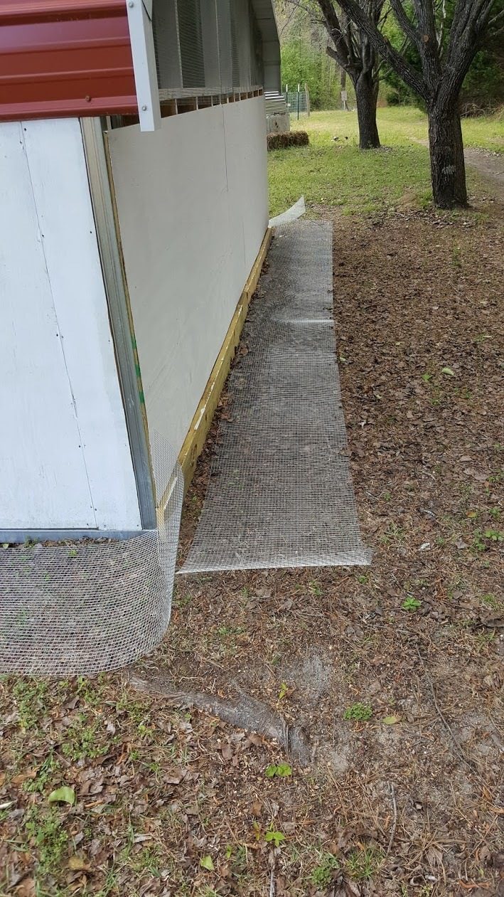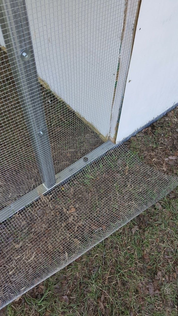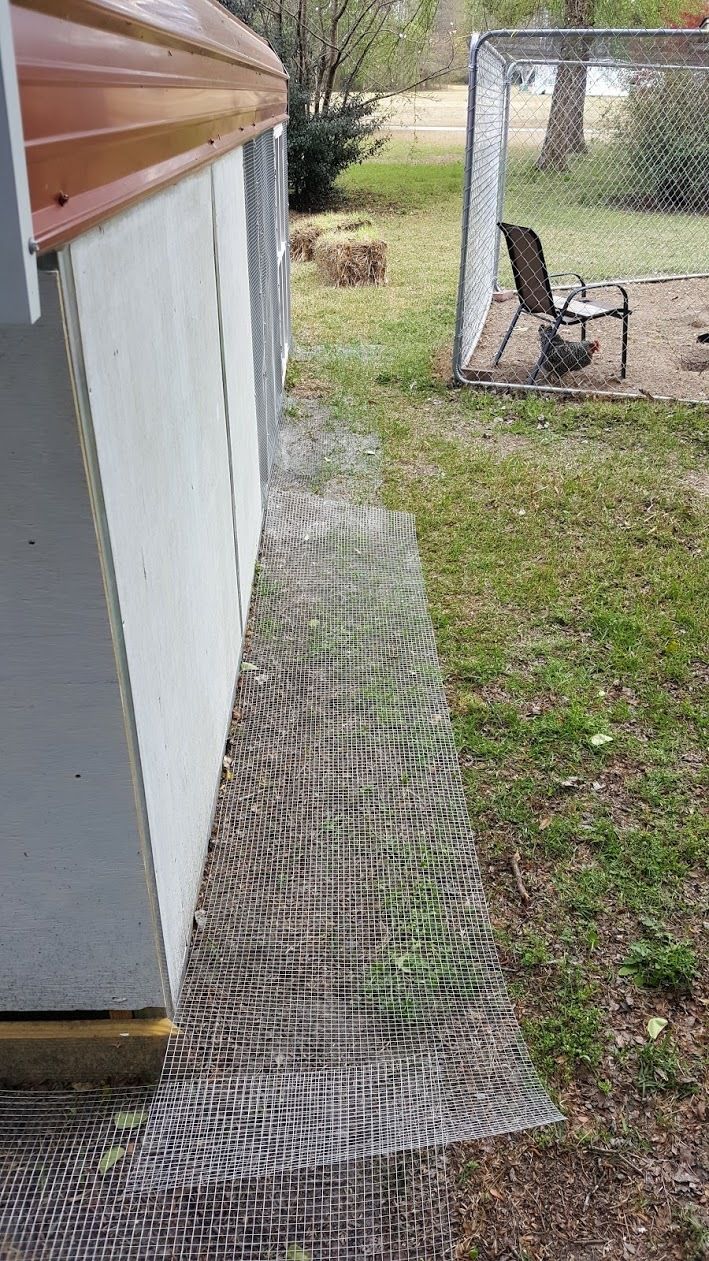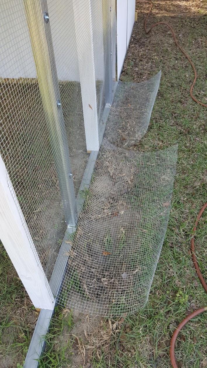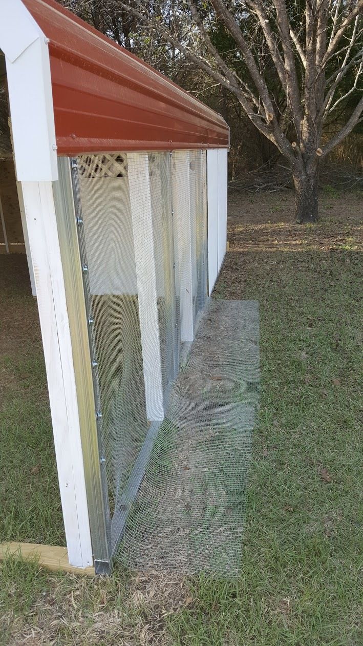 Some pics of the "built-in" apron. We figured it would be more beneficial to pull the HC from the coop itself out on the ground. Trim will be going over the wood portions and the metal sections were screwed in with a washer to hold it in place.