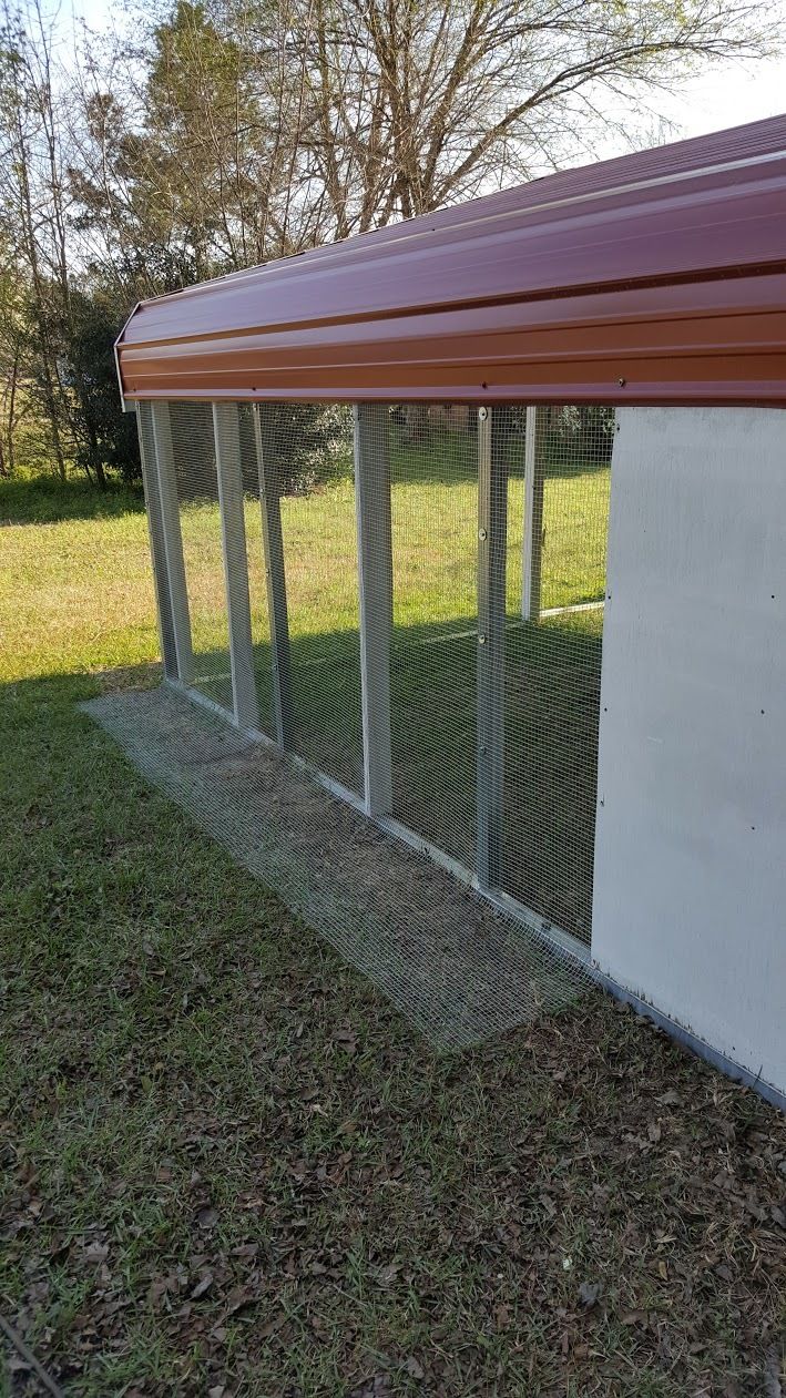 I think this wide open car port coop idea is a good one for southern growers. We talk a lot about the Woods fresh air coop, but read his book and you find he had plans for something similar to this carport for southern states. It was made of wood, but the idea is pretty much the same.