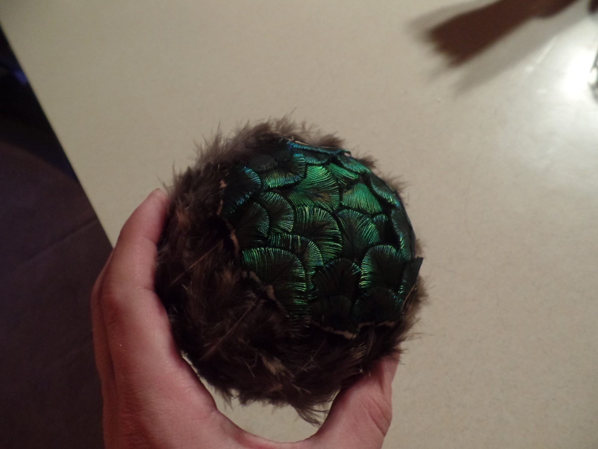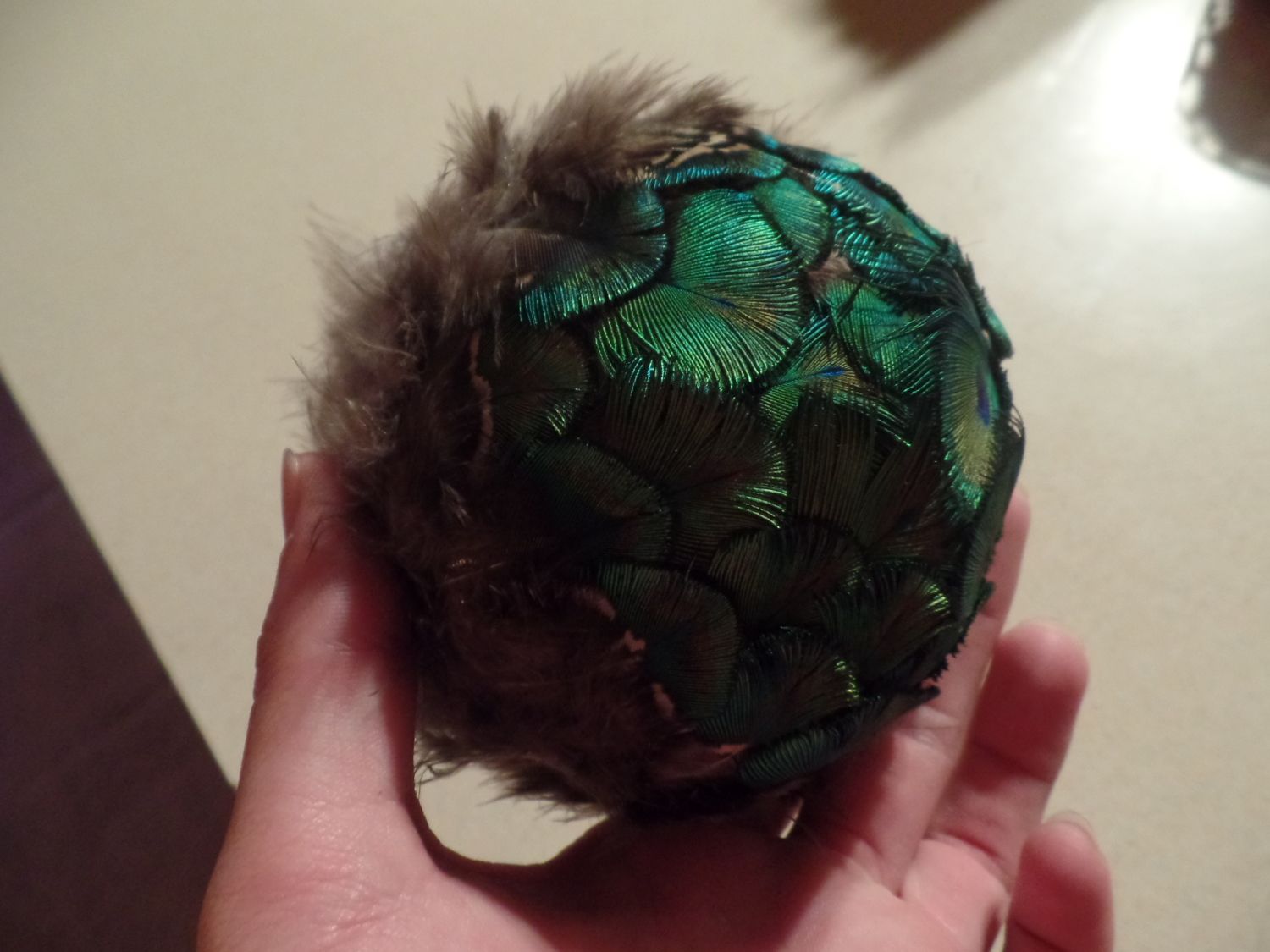 Hey Birdrain maybe you could put a string in it and hang it from your ceiling and make some more and then you would have a bunch of feather puffs hanging around your room.![]()