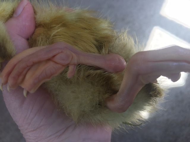 I helped this little fellow because he was a couple of days past pipping and was not getting out. He was pretty goey at first and hadn't completely obsorbed everything. I have given him poly vi sol and electrolytes. He has absorbed everything, but his feet are still curled in and he holds his neck down. Do you think he has a chance to straighten out? Is there anything else I can do to help him?He is alert just can't stand very long and can't walk. Please let me know your thoughts.