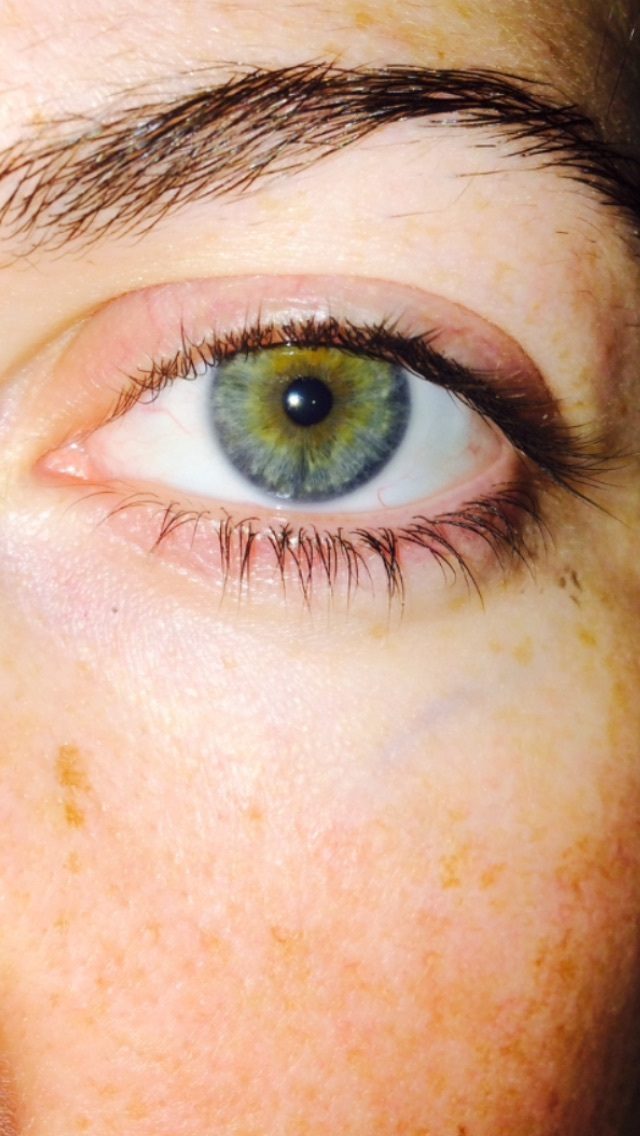 Awake well before the birds, so thought I'd try to find an answer to your very interesting question. I have always wondered this myself, as my grandparents had light eyes (grandpa's were pale gray-blue, and gramma had light greenish blue with gold-brown around the pupil). My mom had eyes like her father's, but her brother (Uncle Dave) had very unusual light yellow-gold eyes. Your eyes remind me of Uncle Dave's, but his were much lighter, with yellowish centers (similar to your sister's eyes).