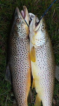 The photo is of a great days catch of my husbands a few winters ago. Hard to tell but they were beautiful 5 pound trout that were caught within an hour of each other, doesn't happen to often!!
