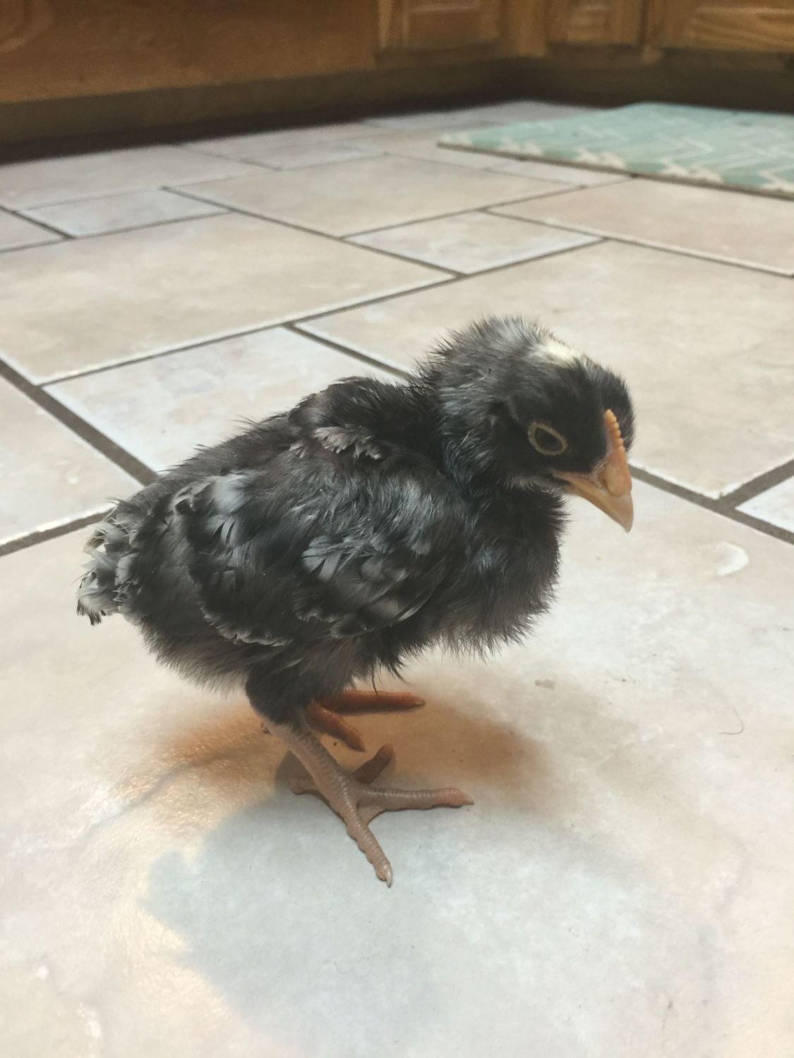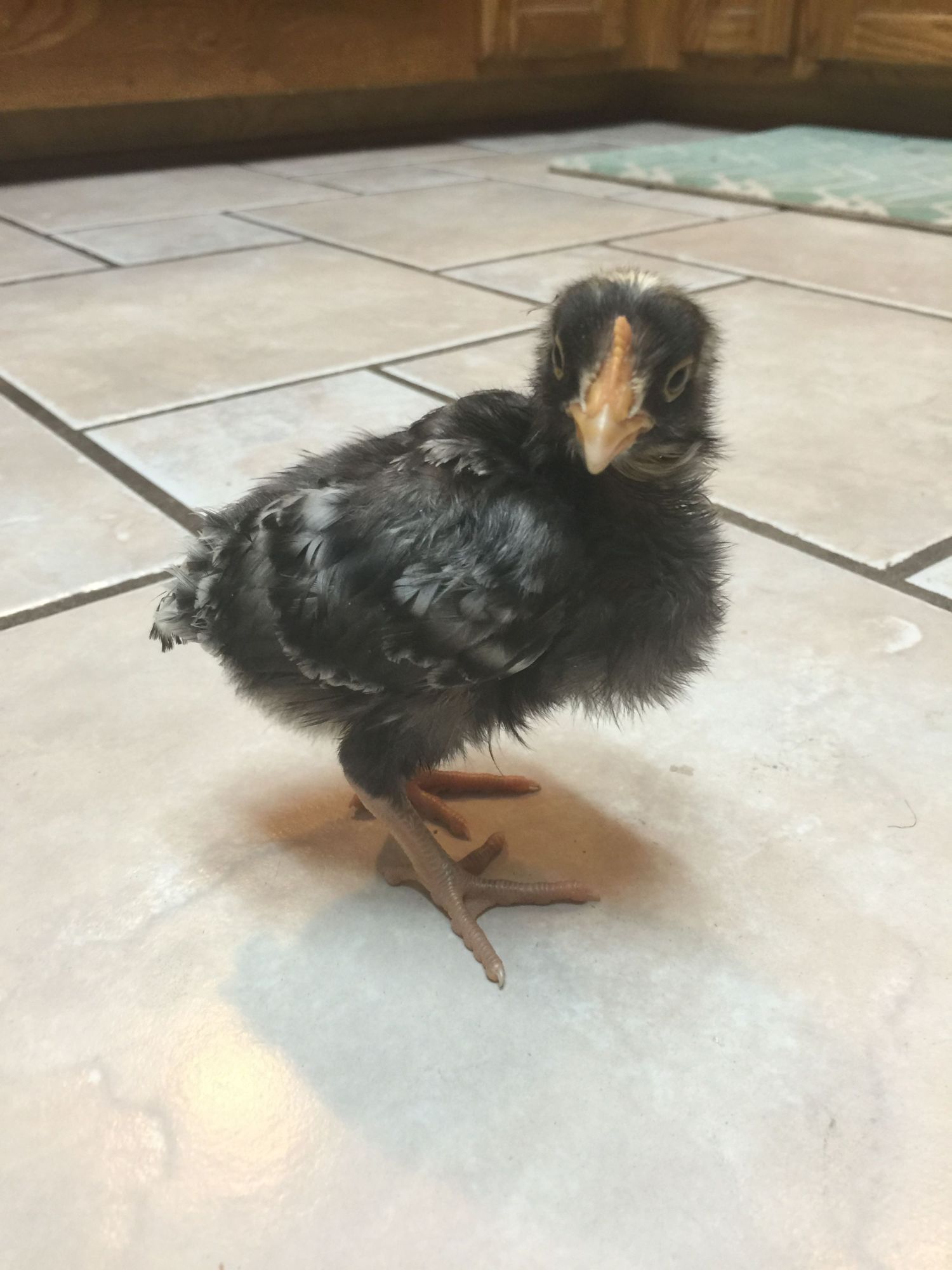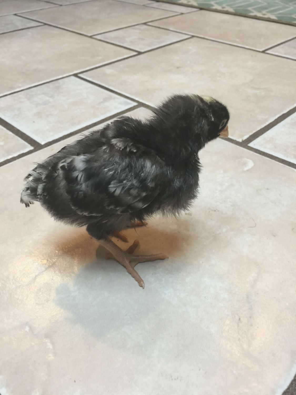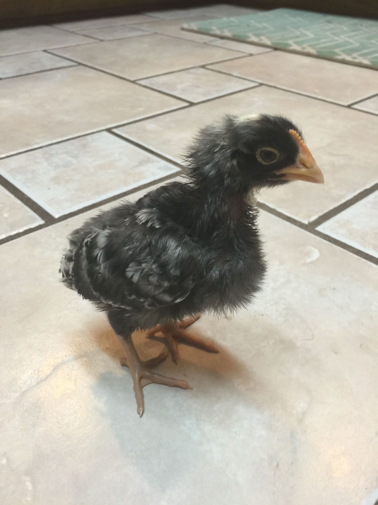 The fact that it's your free chick means it's quite likely male, but the leg feathering is present on both genders (not sex linked at all). Some cuckoo Marans have feathered legs, some don't. the only other barred breed with feathered legs that comes to mind is a Cochin, and this is not a Cochin. Pretty safe to say cuckoo Marans.