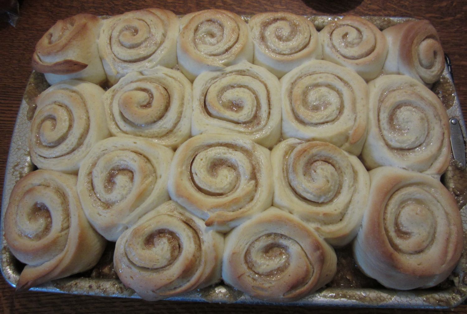 I got the rolls warming up in the oven with a pan of hot water at 6:30am. I took them out at 7 and warmed up the oven. At about 7:30am I had:
