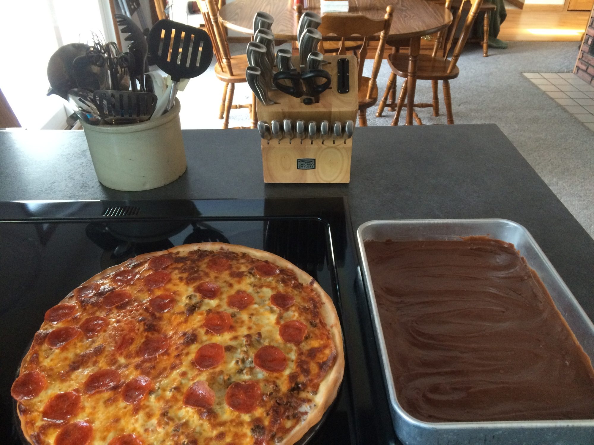 I decided it was a good day for homemade pizza and homemade brownies...it's -2 with a-24 below wind chill so I'm helping to heat up the house.
