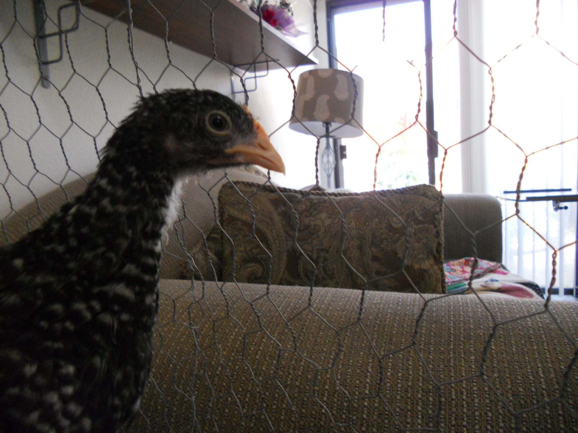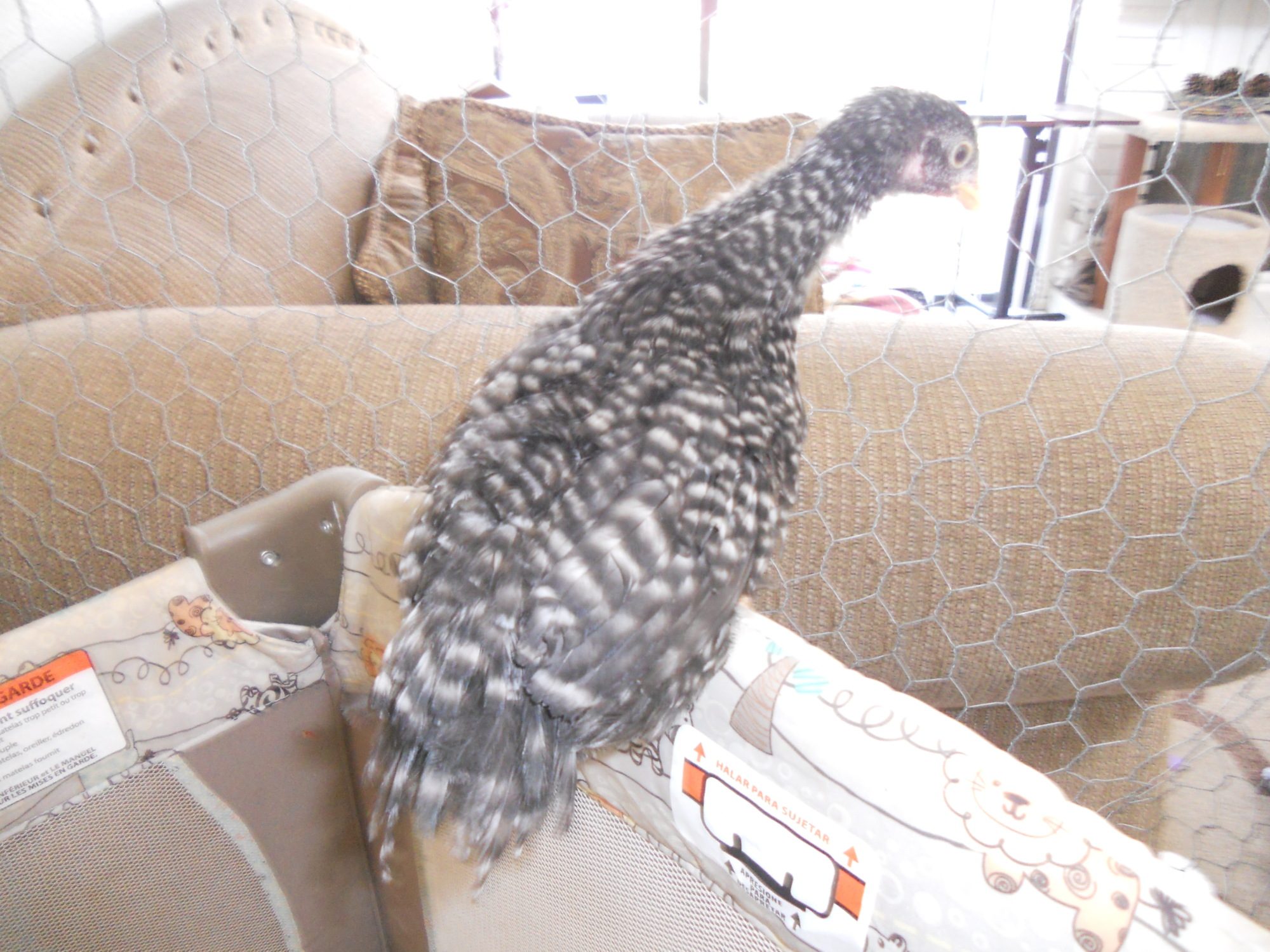 And look at this tail. It's getting some feathers longer then other, like stranglers, where Astrid's tail looks like an adult BR hen's tail. She was looking at the newspaper I put on the ground to catch the poop as they roost. LOL